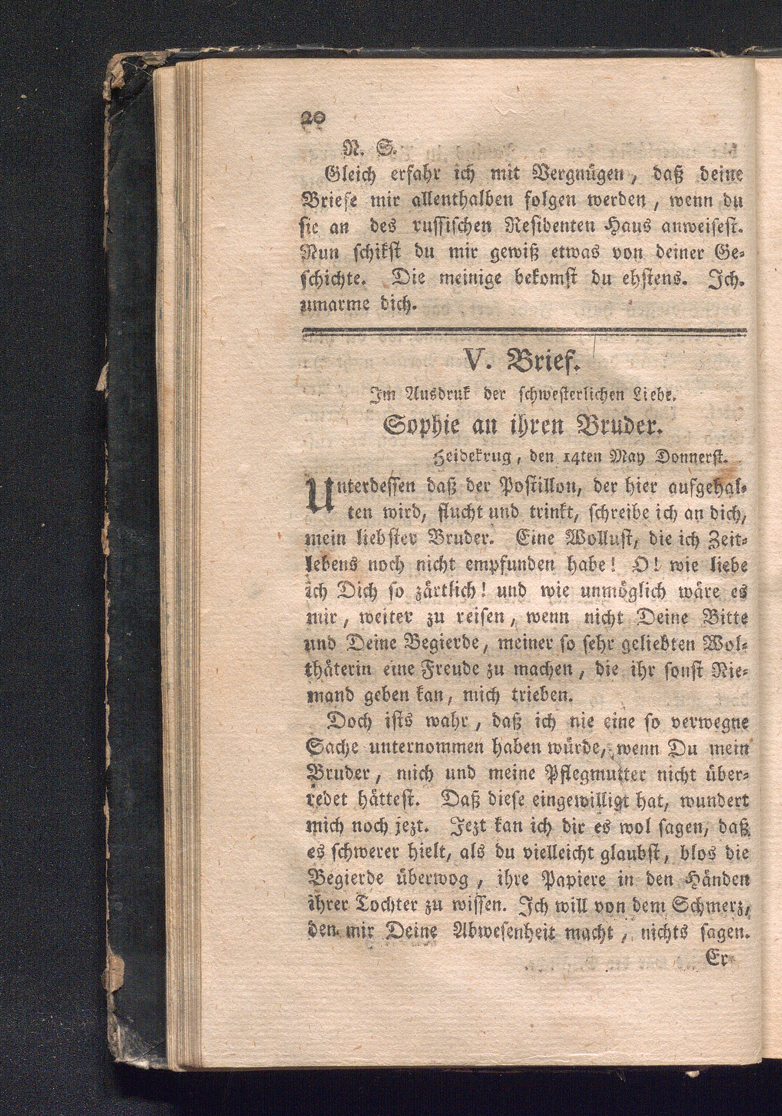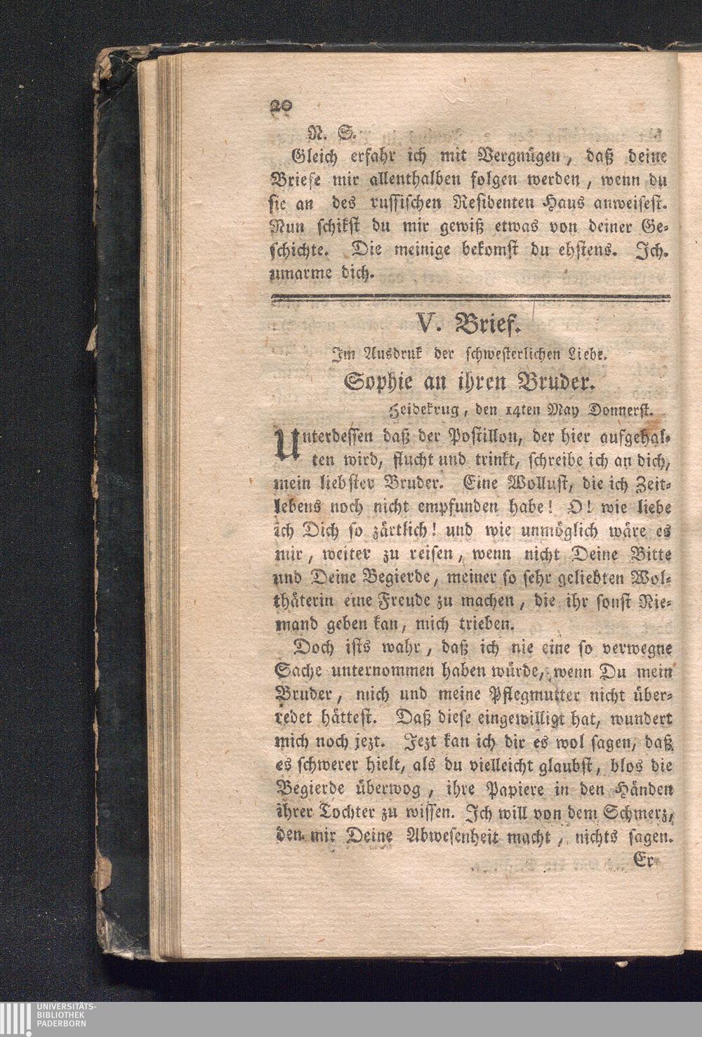 V. Brief. Jm Ausdruk der schwesterlichen Liebe.