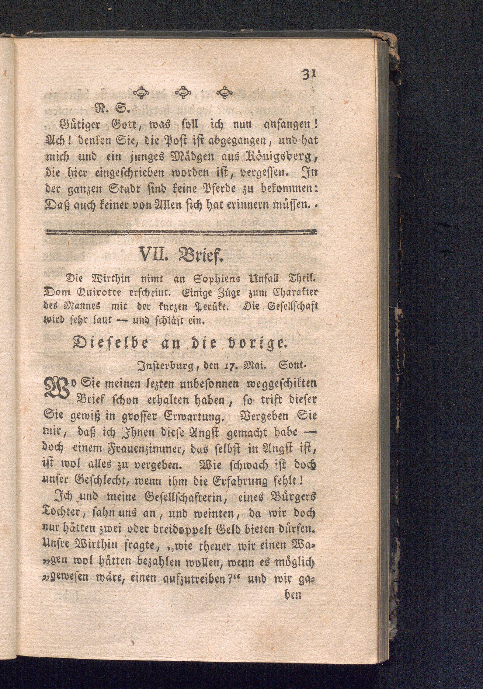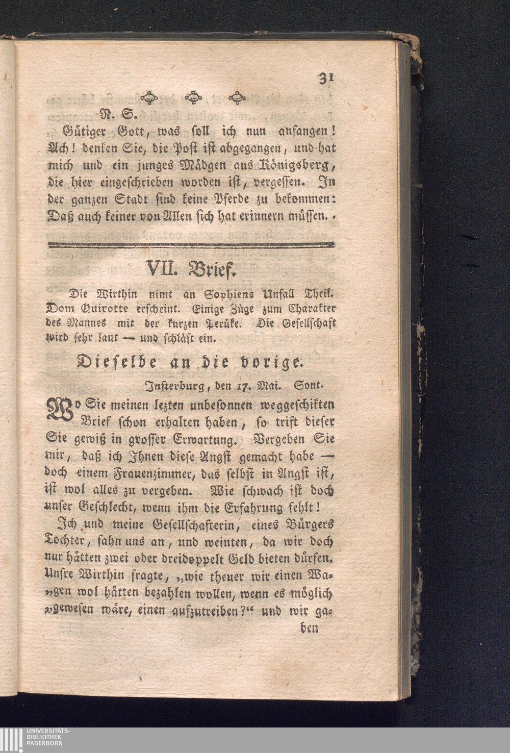 VII. Brief. Die Wirthin nimt an Sophiens Unfall Theil. Don Quixotte erscheint. Einige[...]