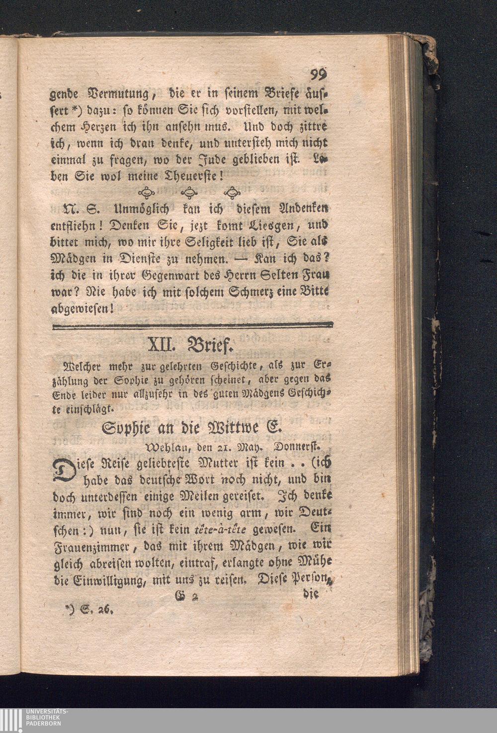 XII. Brief. welcher mehr zur gelehrten Geschichte, als zur Erzählung der Sophie zu[...]