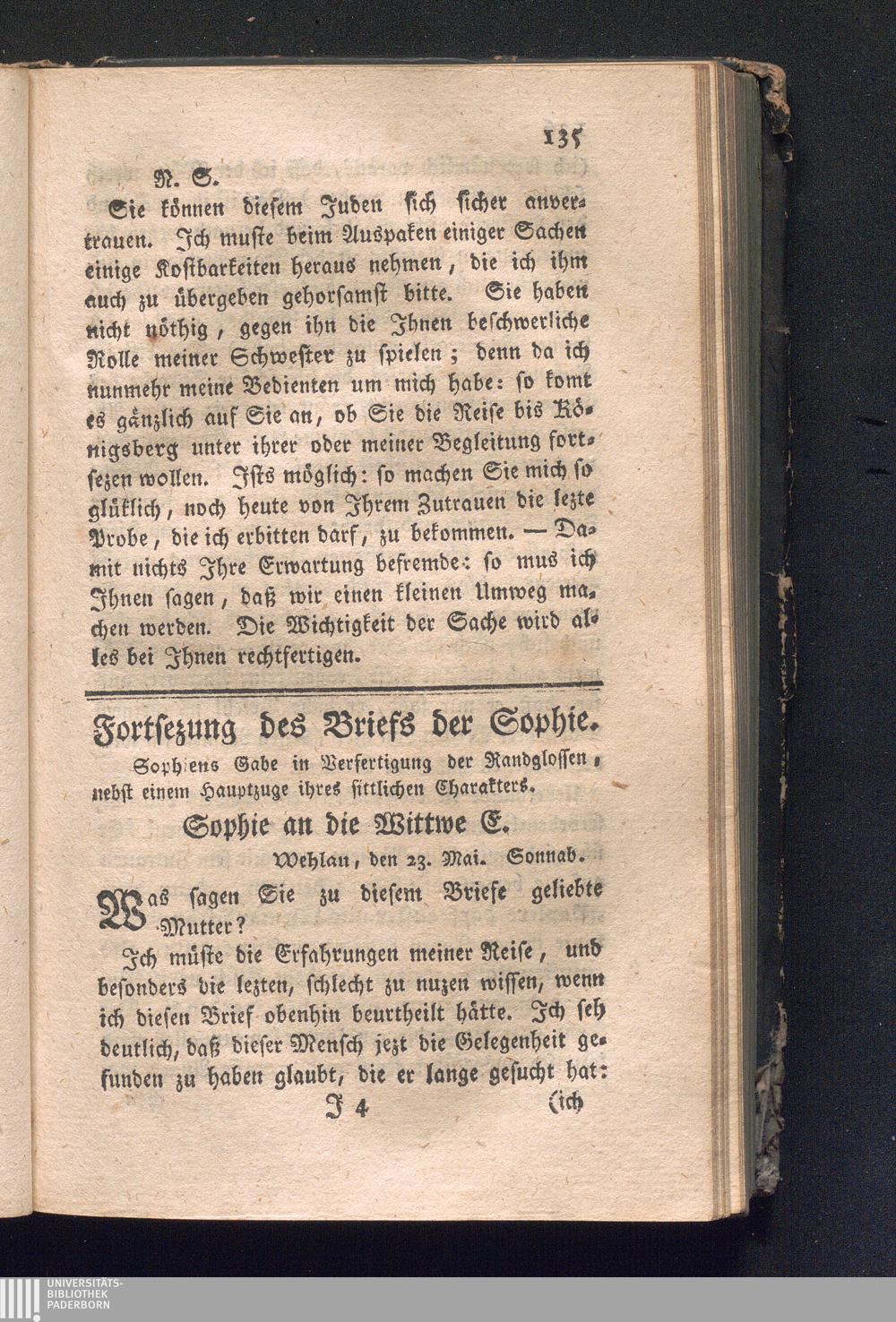 Fortsezung des Briefs der Sophie. Sophiens Gabe in Verfertigung der Randglossen,[...]