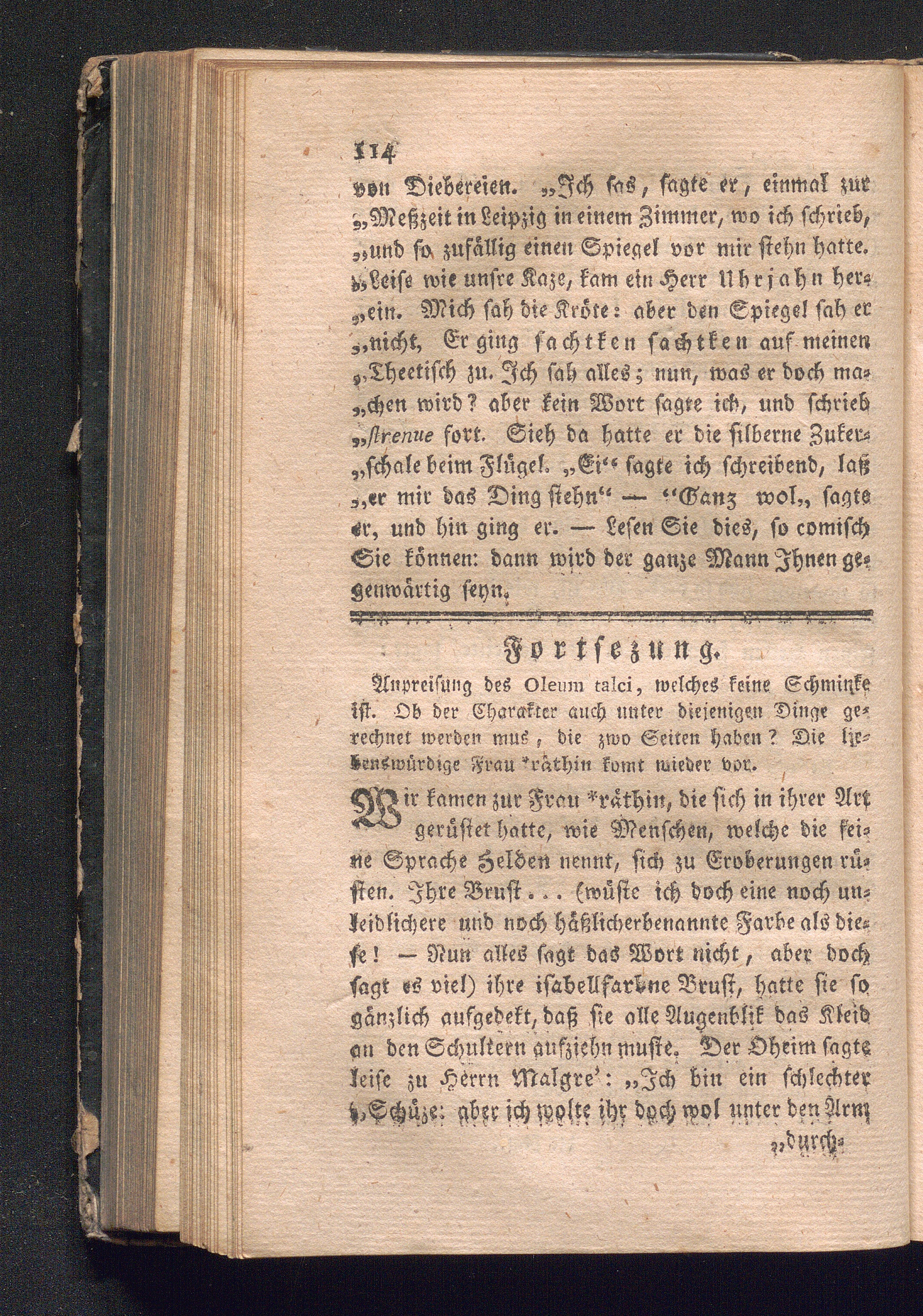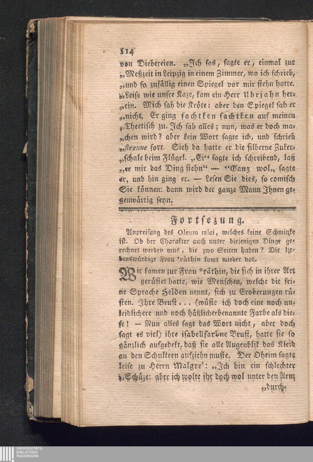 Fortsezung. Anpreisung des Oleum talci, welches keine Schminke ist. - Ob der Charakter[...]