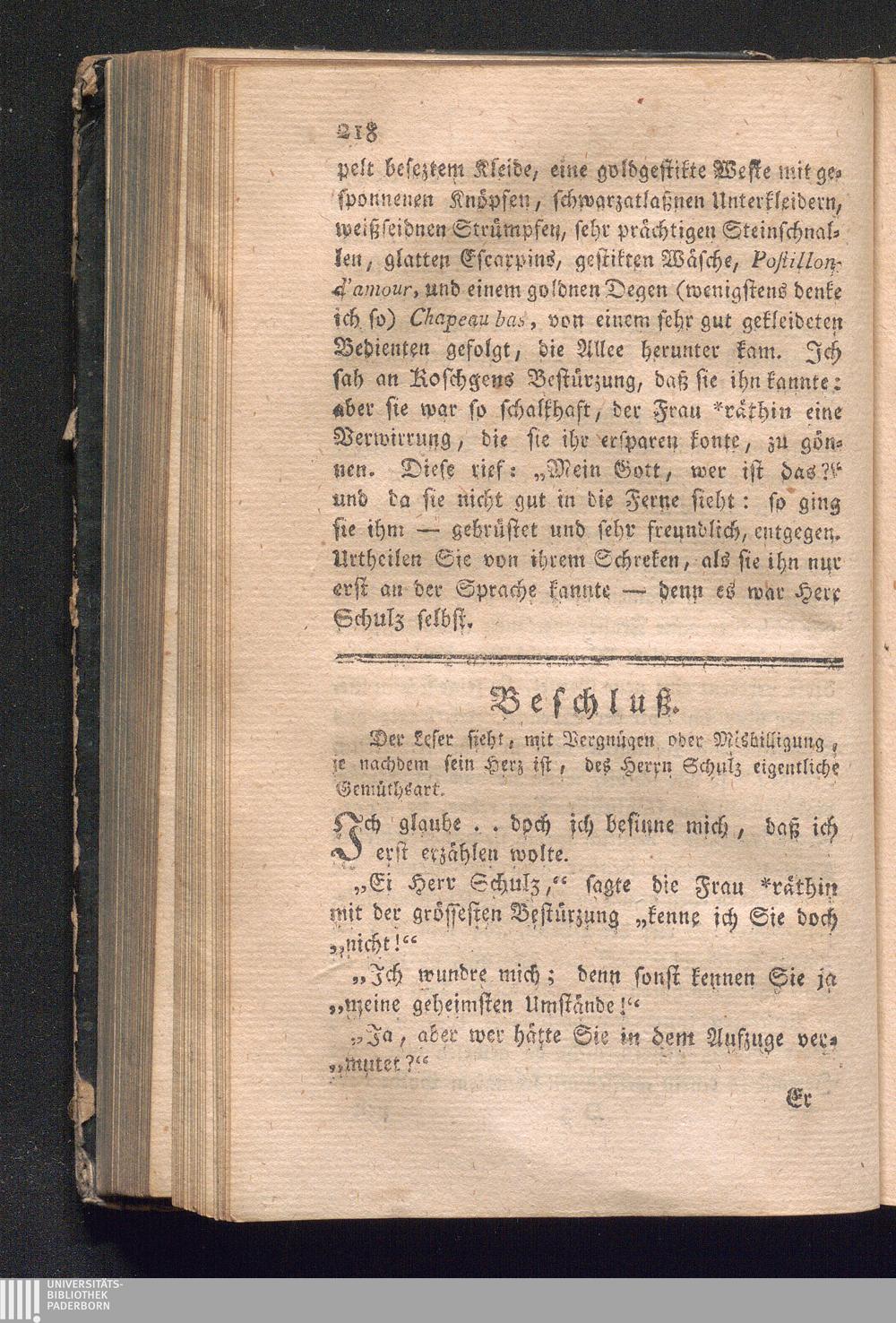 Beschlus. Der Leser sieht, mit Vergnügen oder Misbilligung, je nachdem sein Herz[...]