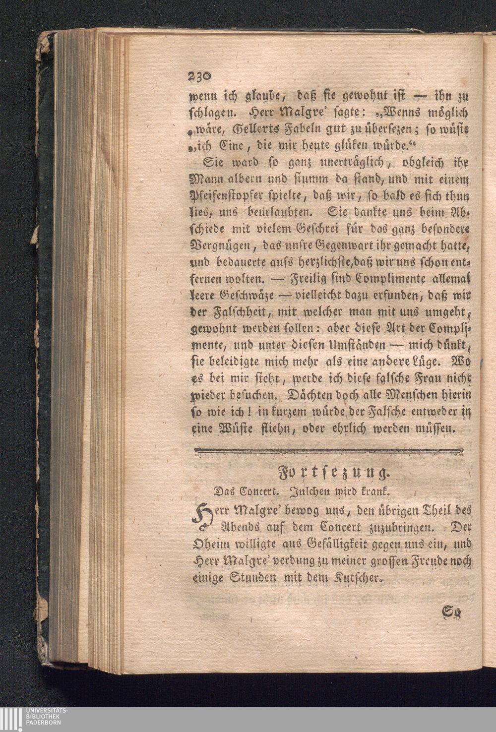 Fortsezung. Das Concert. Julchen wird krank.