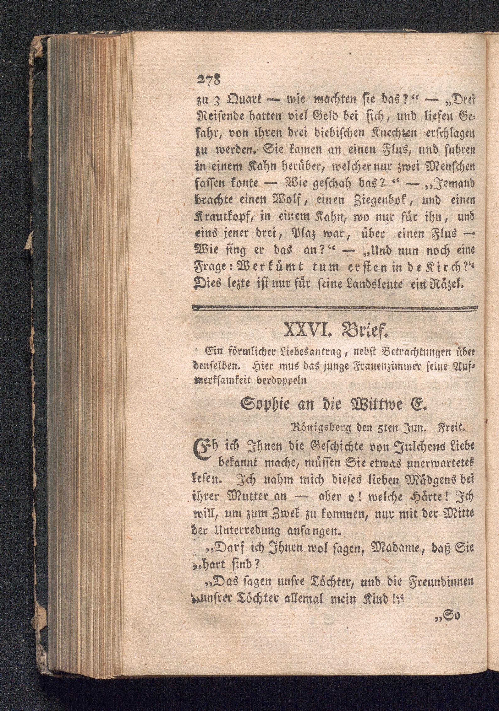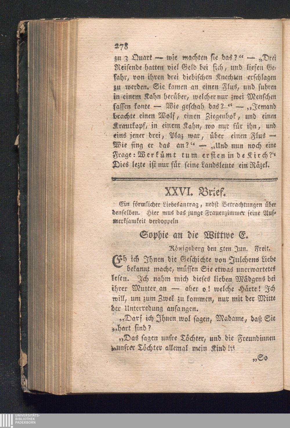 XXVI. Brief. Ein förmlicher Liebesantrag, nebst Betrachtungen über denselben. Hier[...]