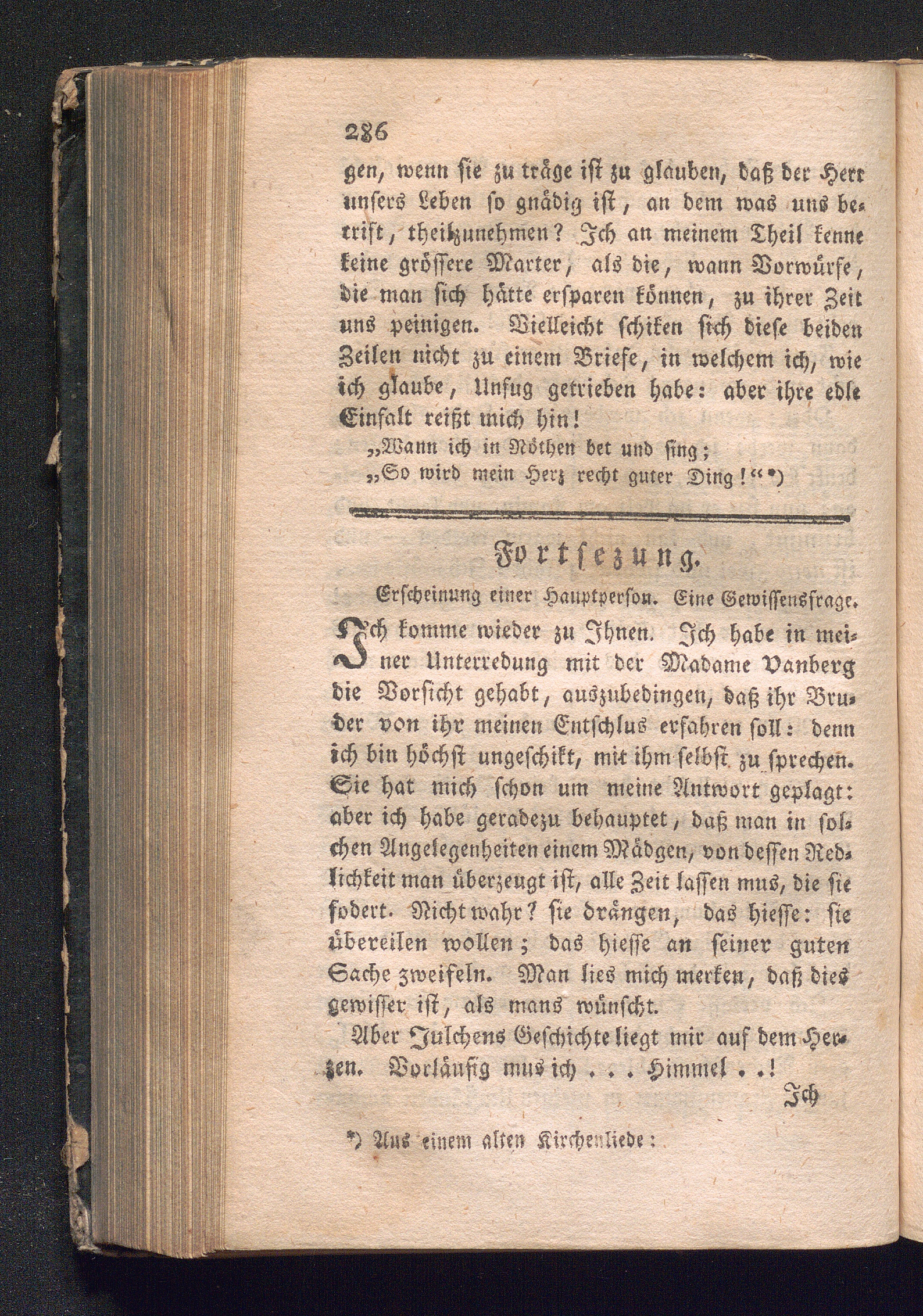 Fortsezung. Erscheinung einer Hauptperson. Eine Gewissensfrage.