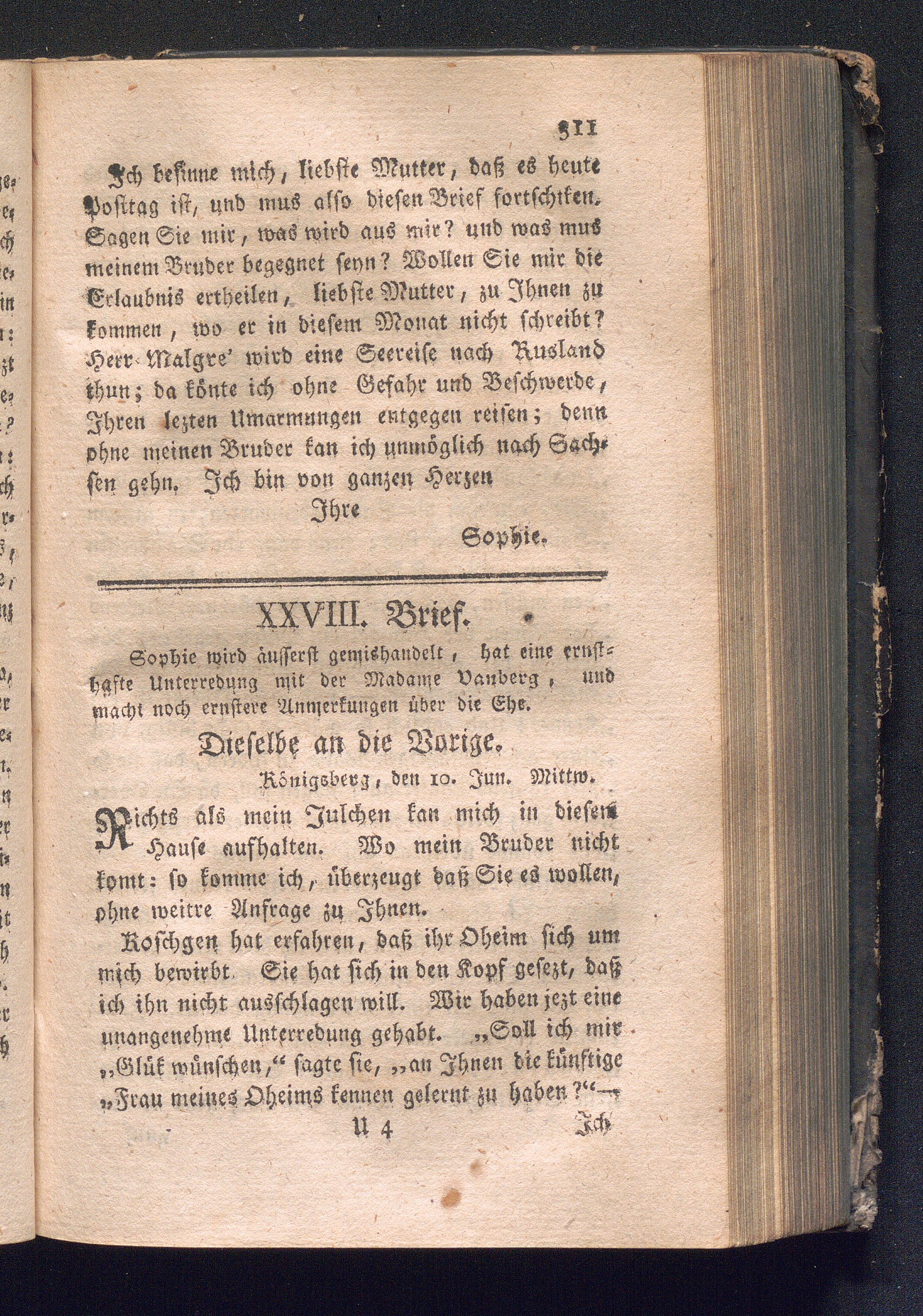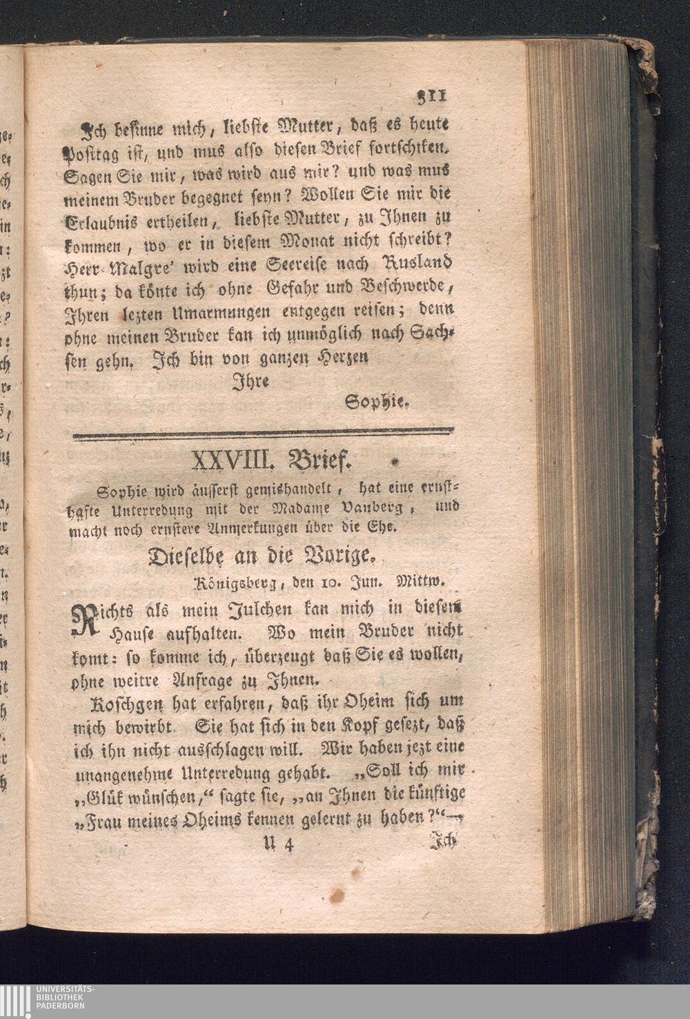 XXVIII. Brief. Sophie wird äusserst gemishandelt, hat eine ernsthafte Unterredung[...]
