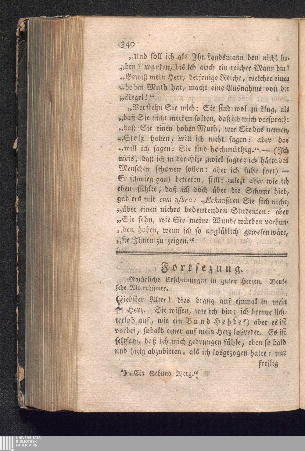 Fortsezung. Natürliche Erscheinungen in guten Herzen. Deutsche Alterthümer.