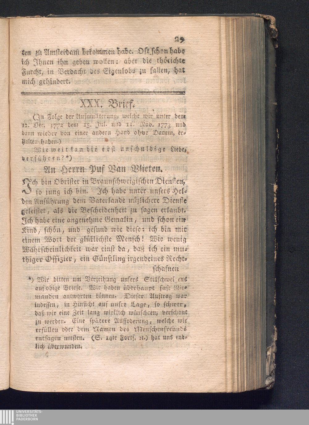 XXX. Brief. Wie weit kan die erst unschuldige Liebe verführen?