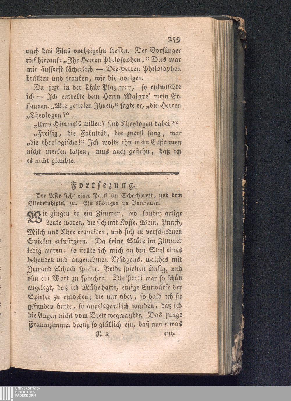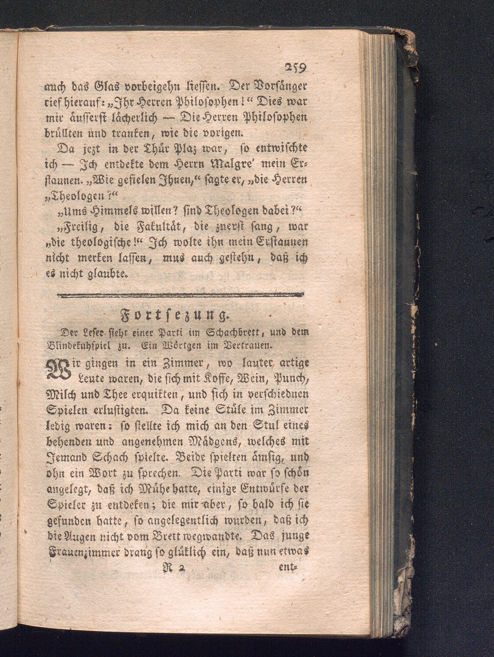 Fortsezung. Der Leser sieht einer Parthie im Schachbret und dem Blindekuhspiel zu.[...]