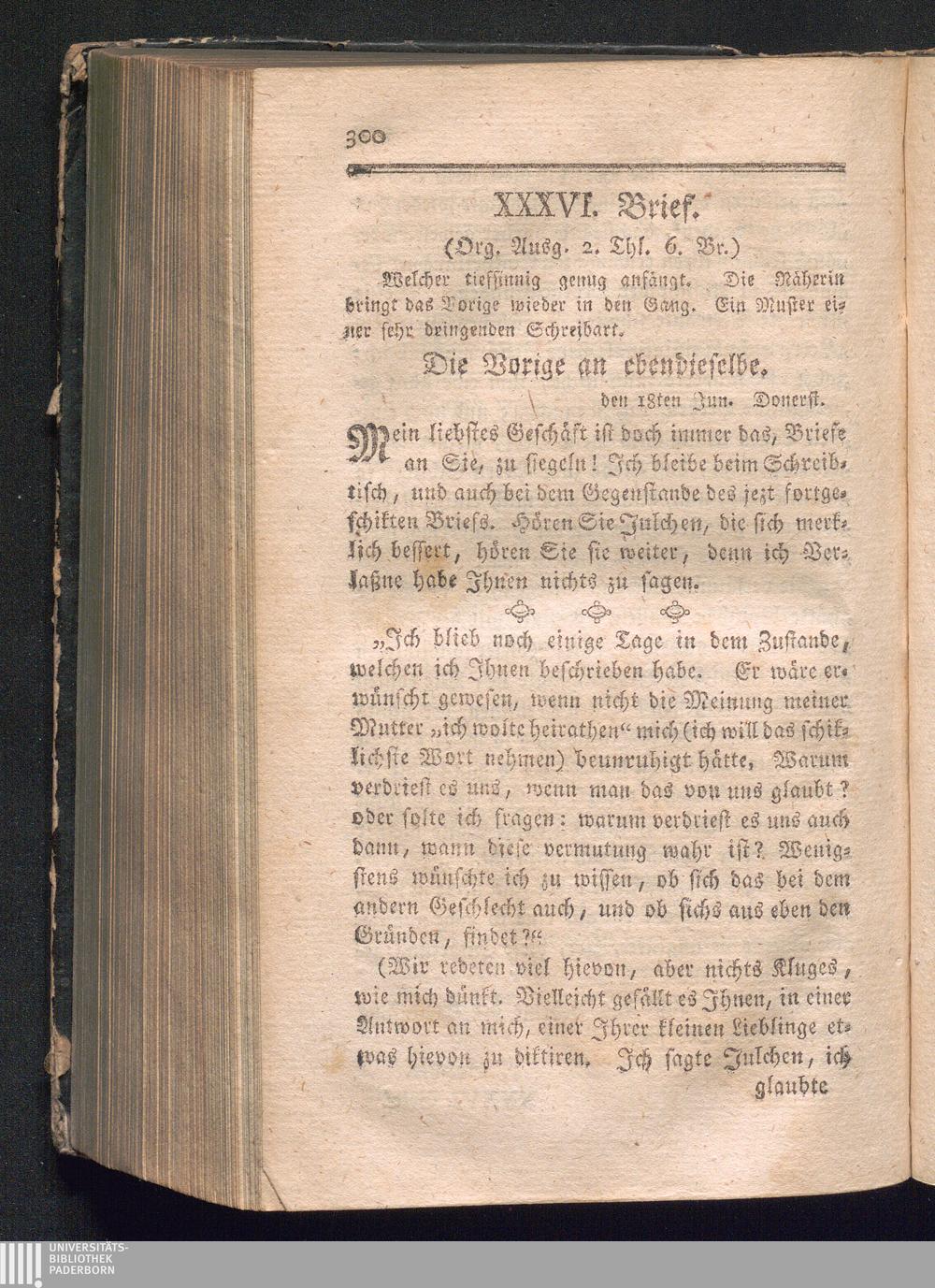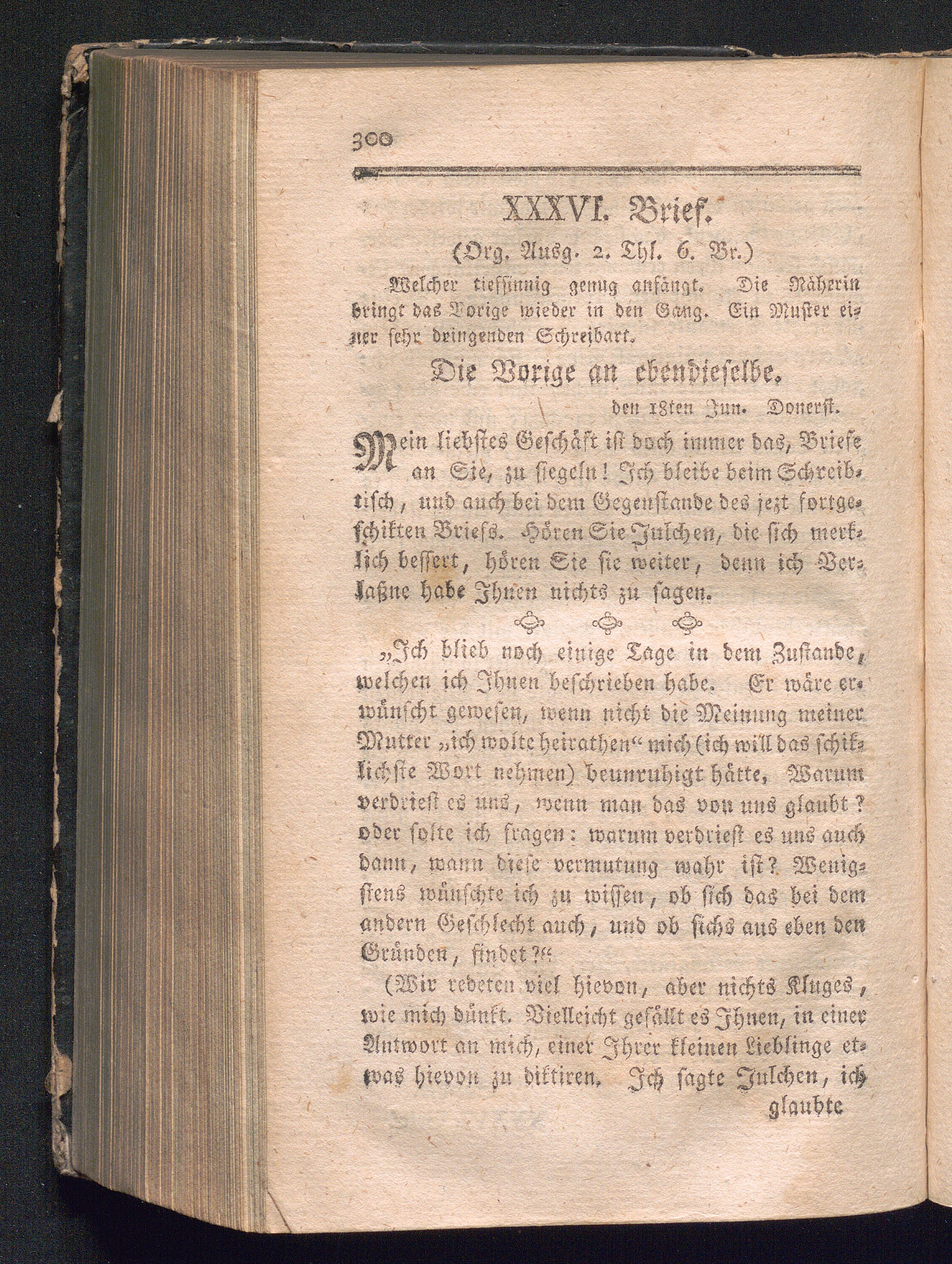 XXXVI. Brief, welcher tiefsinnig genug anfängt. Die Näherin bringt das vorige wieder[...]