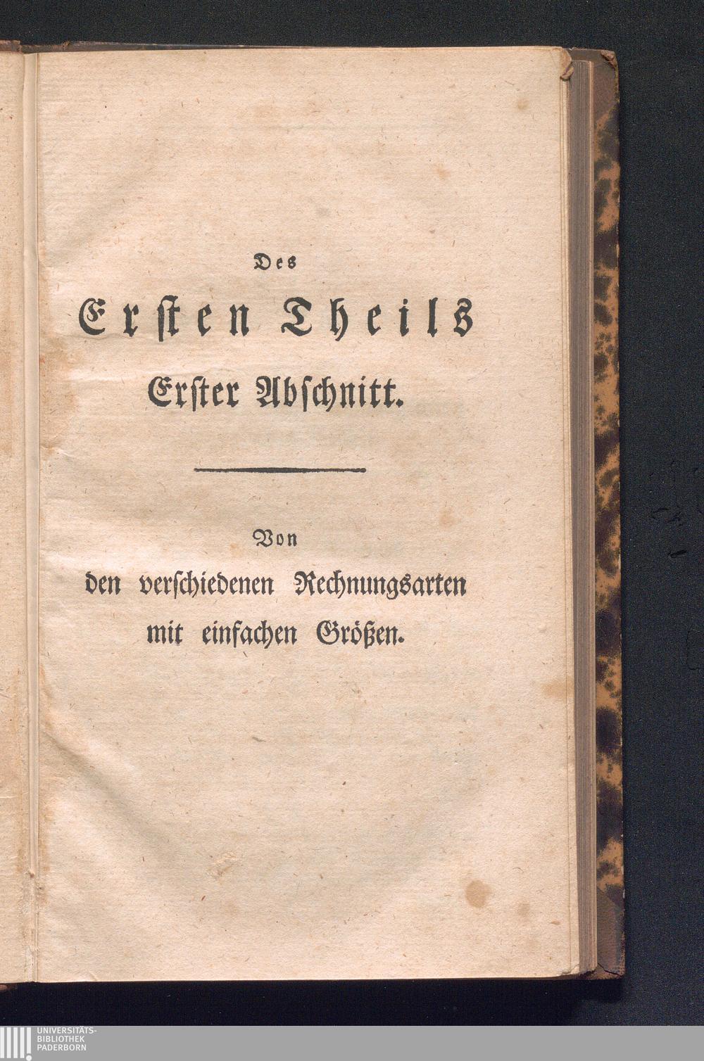 Erster Abschnitt. Von den verschiedenen Rechnungsarten mit einfachen Größen.