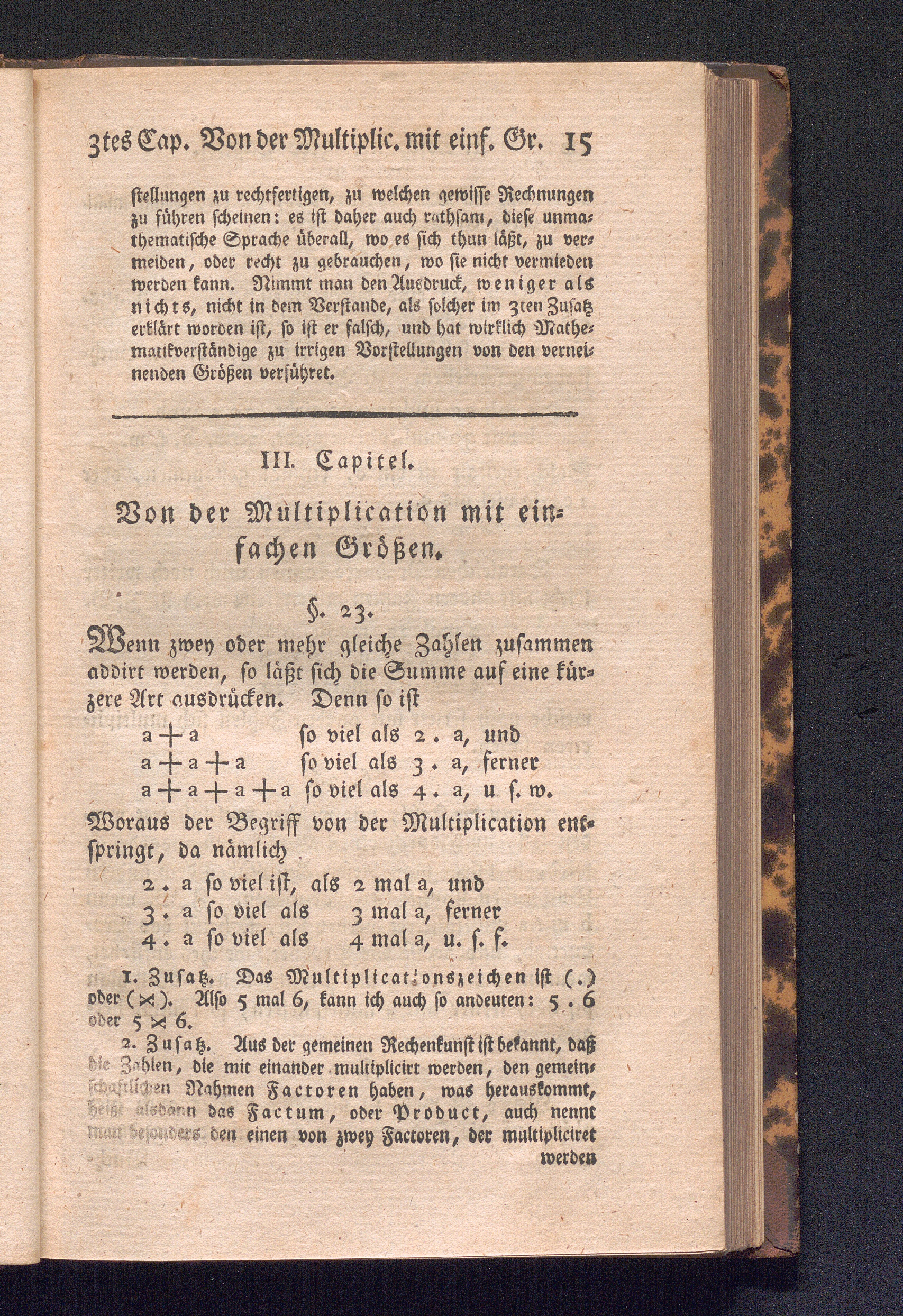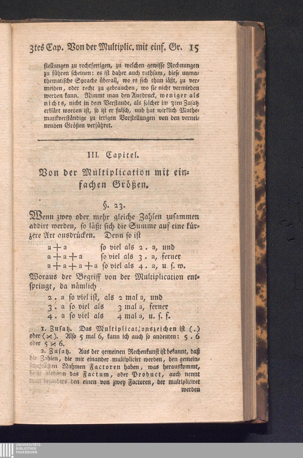 III. Capitel. Von der Multiplication mit einfachen Größen.