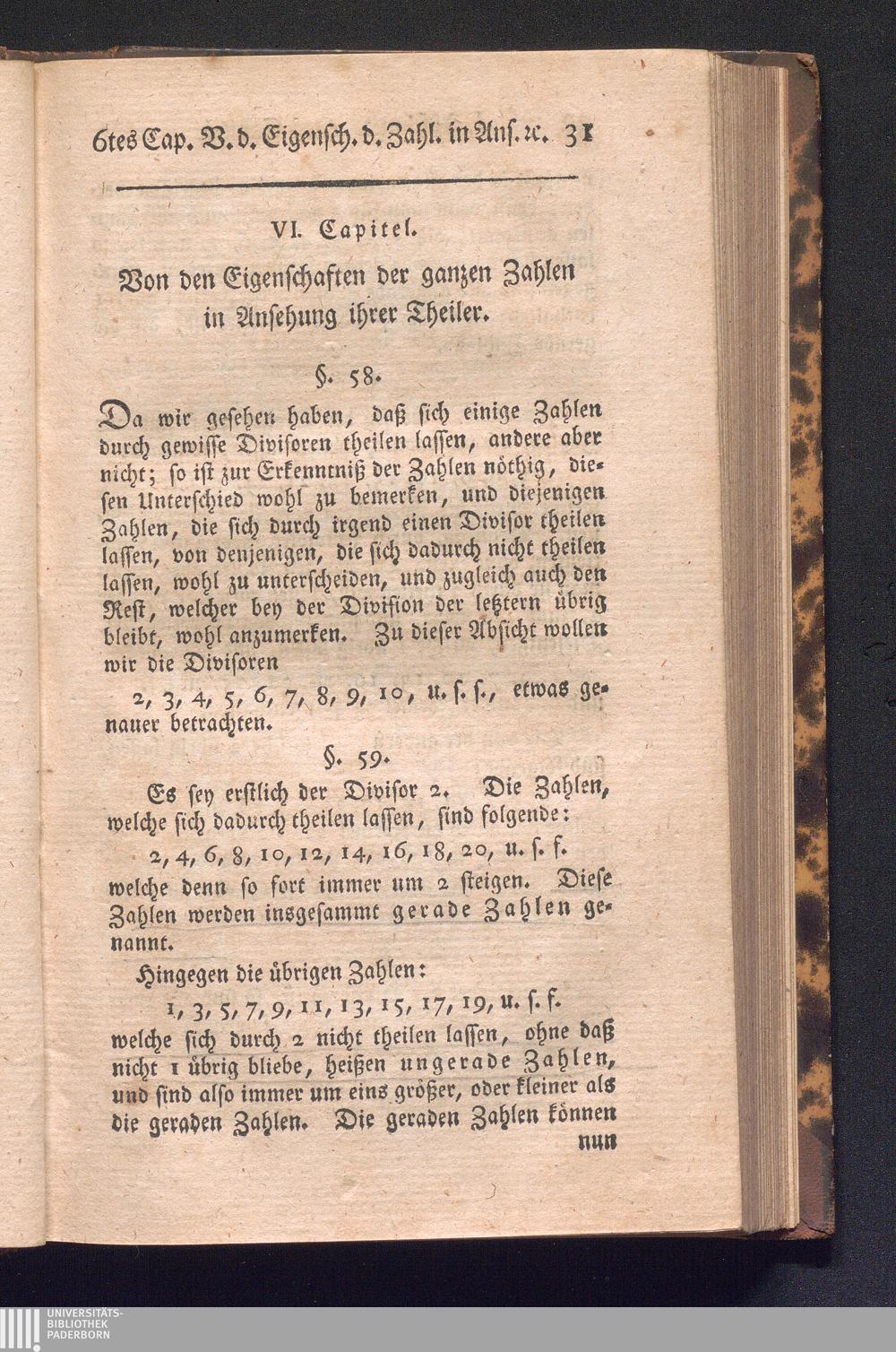 VI. Capitel. Von den Eigenschaften der ganzen Zahlen in Ansehung ihrer Theiler.