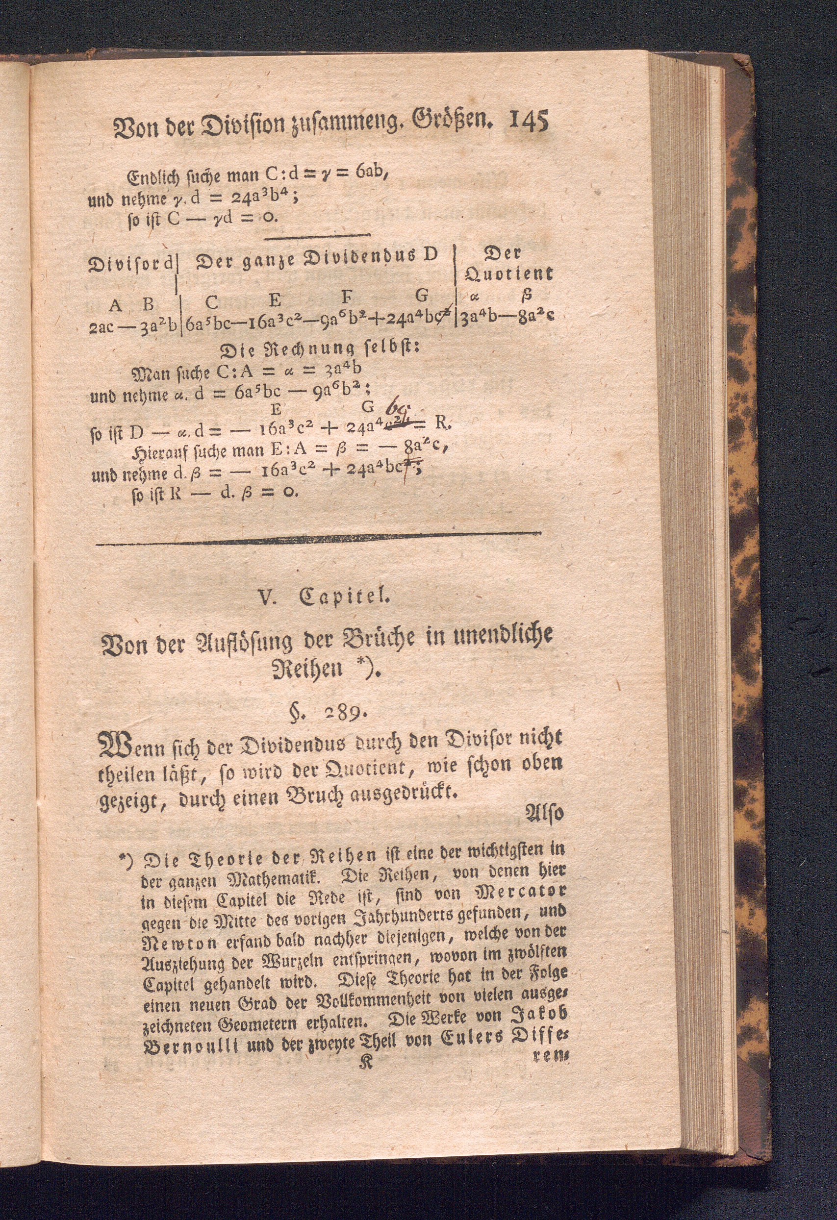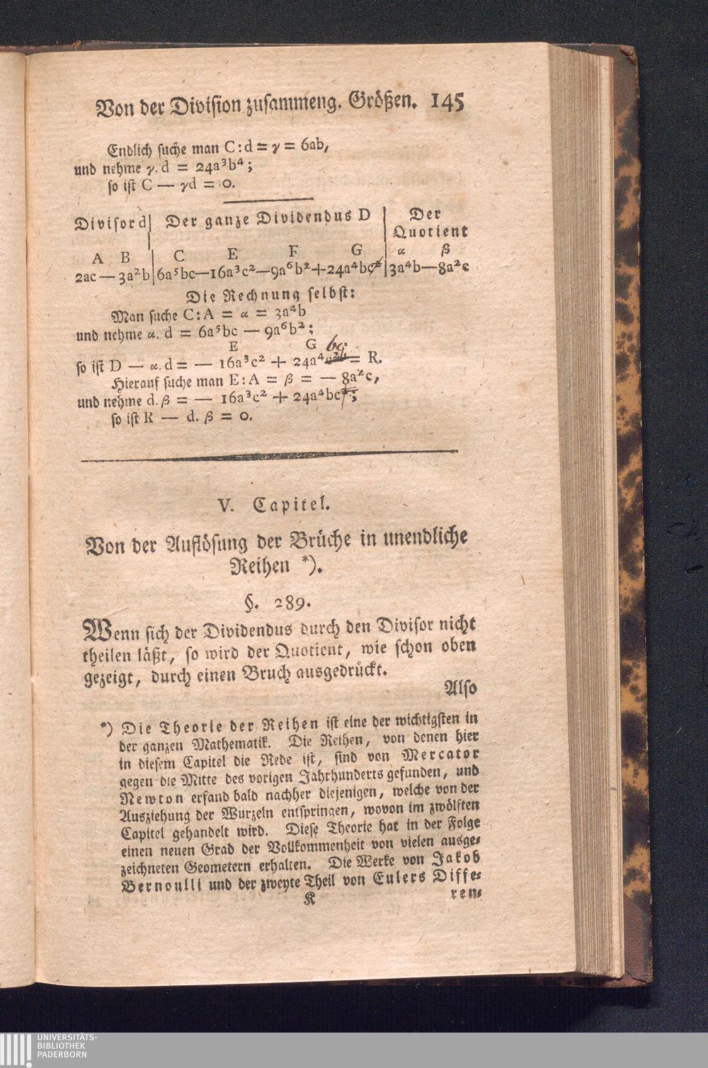 V. Capitel. Von der Auflösung der Brüche in unendliche Reihen.