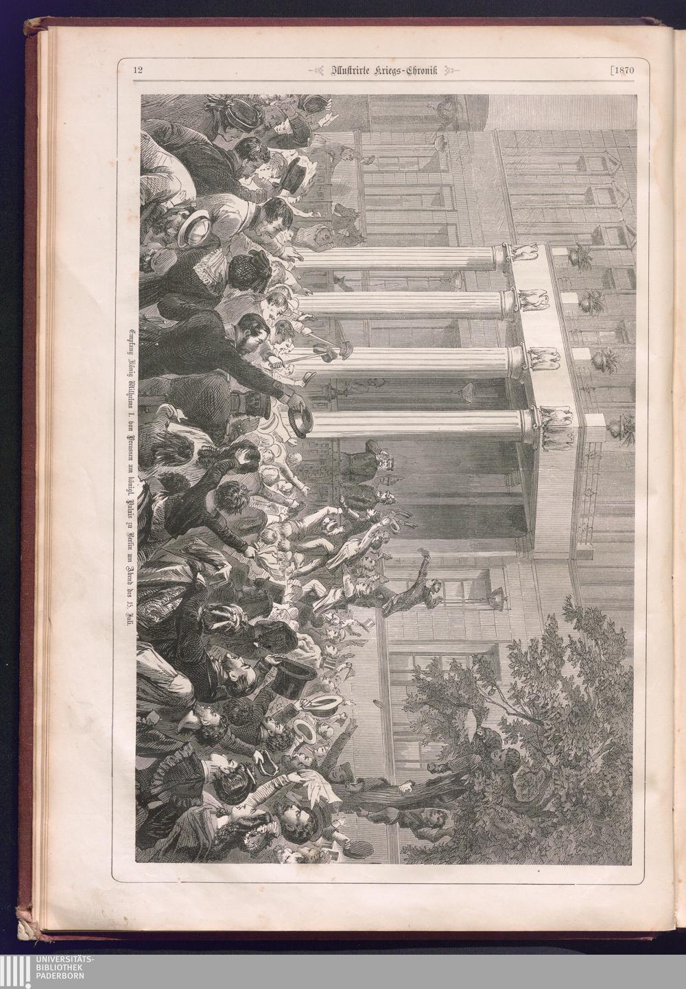 Illustrirte Kriegs-Chronik : Gedenkbuch an den Deutsch-Französischen Feldzug von 1870 - 1871 / Geschrieben vom Verfasser der Illustrirten Kriegs-Chronik von 1866 ; Initialen, Porträts, Kriegsbilder, Militär- und Marinebilder, Städteansichten, Karten und Pläne gezeichnet von den artistischen Mitarbeitern der Illustrirten Zeitung. [Hrsg. von Johann Jakob Weber] [Allegorisches Titelbild von C. Scheuren ; Titelblatt Friedr. Baumgarten]
