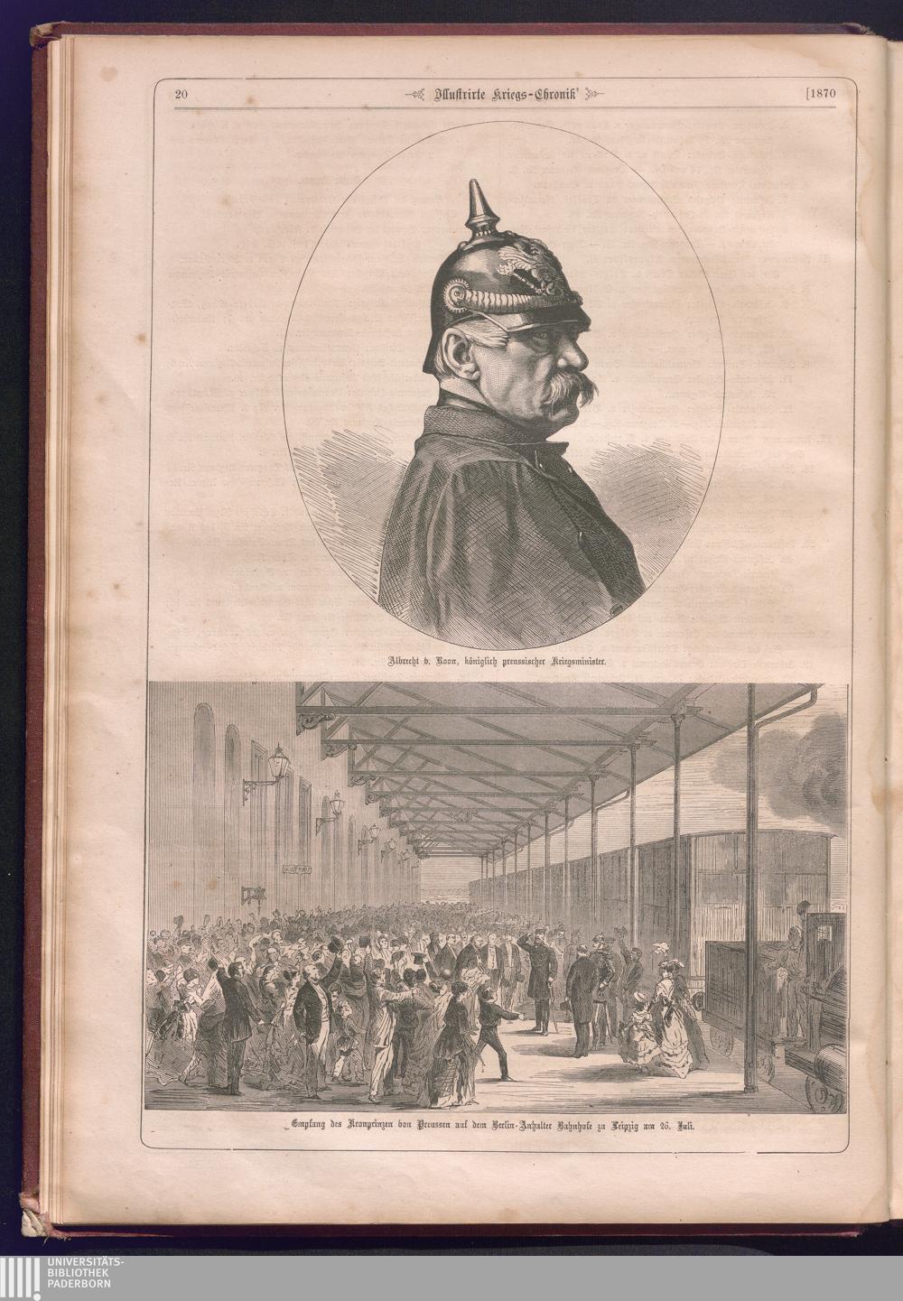 Illustrirte Kriegs-Chronik : Gedenkbuch an den Deutsch-Französischen Feldzug von 1870 - 1871 / Geschrieben vom Verfasser der Illustrirten Kriegs-Chronik von 1866 ; Initialen, Porträts, Kriegsbilder, Militär- und Marinebilder, Städteansichten, Karten und Pläne gezeichnet von den artistischen Mitarbeitern der Illustrirten Zeitung. [Hrsg. von Johann Jakob Weber] [Allegorisches Titelbild von C. Scheuren ; Titelblatt Friedr. Baumgarten]
