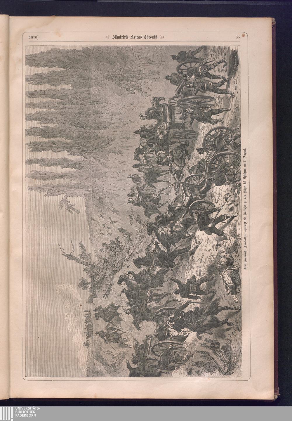 Illustrirte Kriegs-Chronik : Gedenkbuch an den Deutsch-Französischen Feldzug von 1870 - 1871 / Geschrieben vom Verfasser der Illustrirten Kriegs-Chronik von 1866 ; Initialen, Porträts, Kriegsbilder, Militär- und Marinebilder, Städteansichten, Karten und Pläne gezeichnet von den artistischen Mitarbeitern der Illustrirten Zeitung. [Hrsg. von Johann Jakob Weber] [Allegorisches Titelbild von C. Scheuren ; Titelblatt Friedr. Baumgarten]