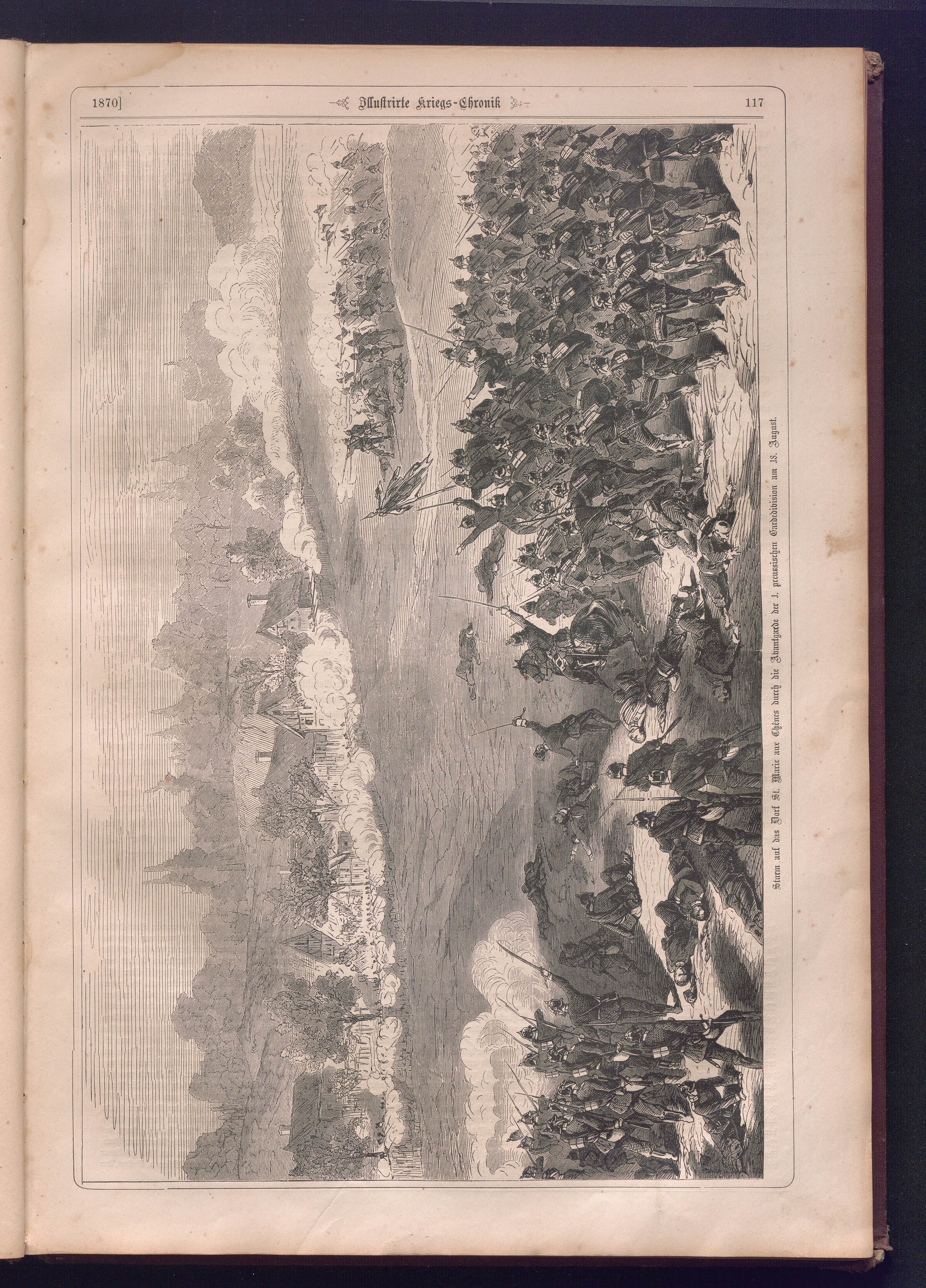Illustrirte Kriegs-Chronik : Gedenkbuch an den Deutsch-Französischen Feldzug von 1870 - 1871 / Geschrieben vom Verfasser der Illustrirten Kriegs-Chronik von 1866 ; Initialen, Porträts, Kriegsbilder, Militär- und Marinebilder, Städteansichten, Karten und Pläne gezeichnet von den artistischen Mitarbeitern der Illustrirten Zeitung. [Hrsg. von Johann Jakob Weber] [Allegorisches Titelbild von C. Scheuren ; Titelblatt Friedr. Baumgarten]