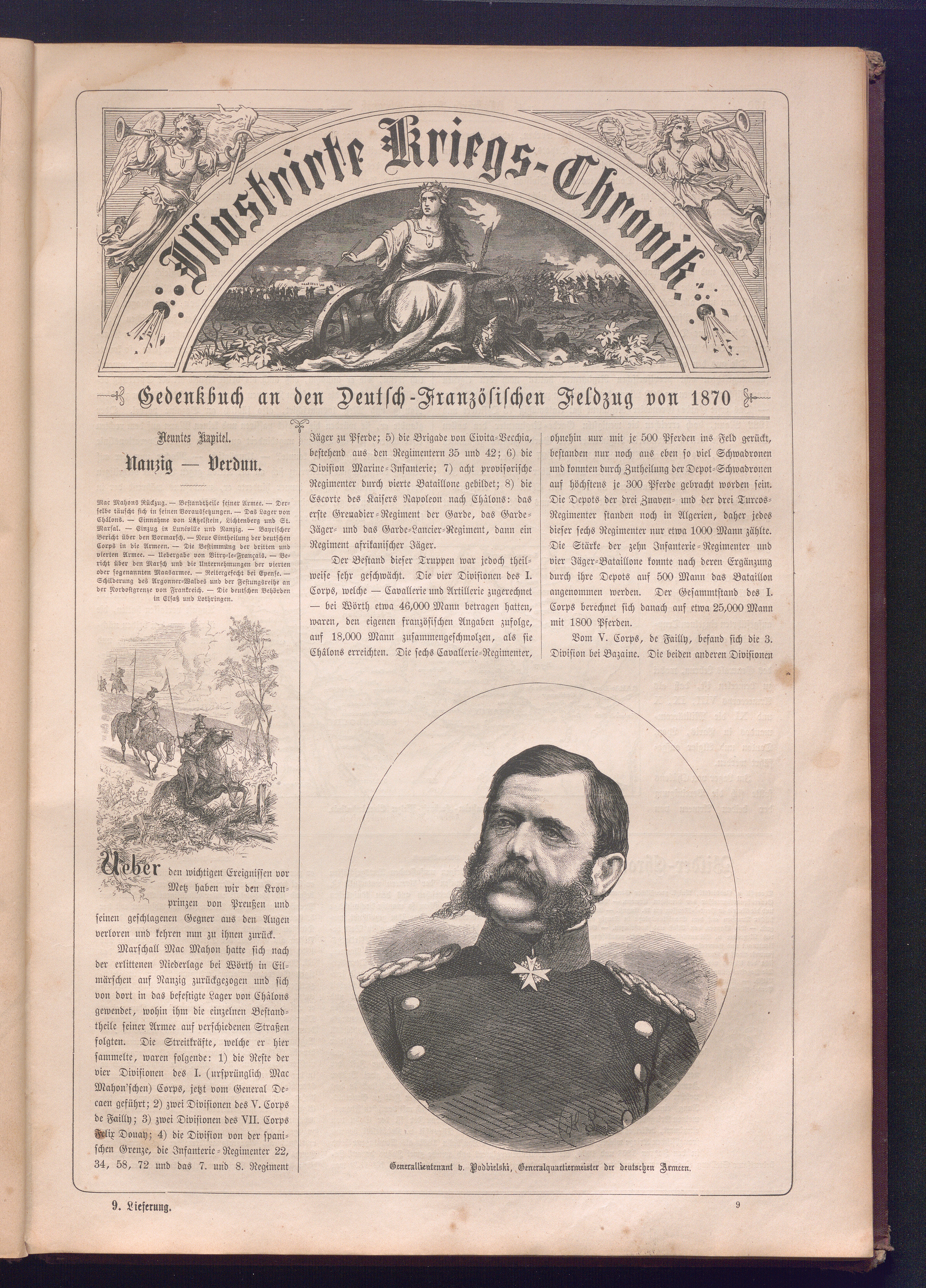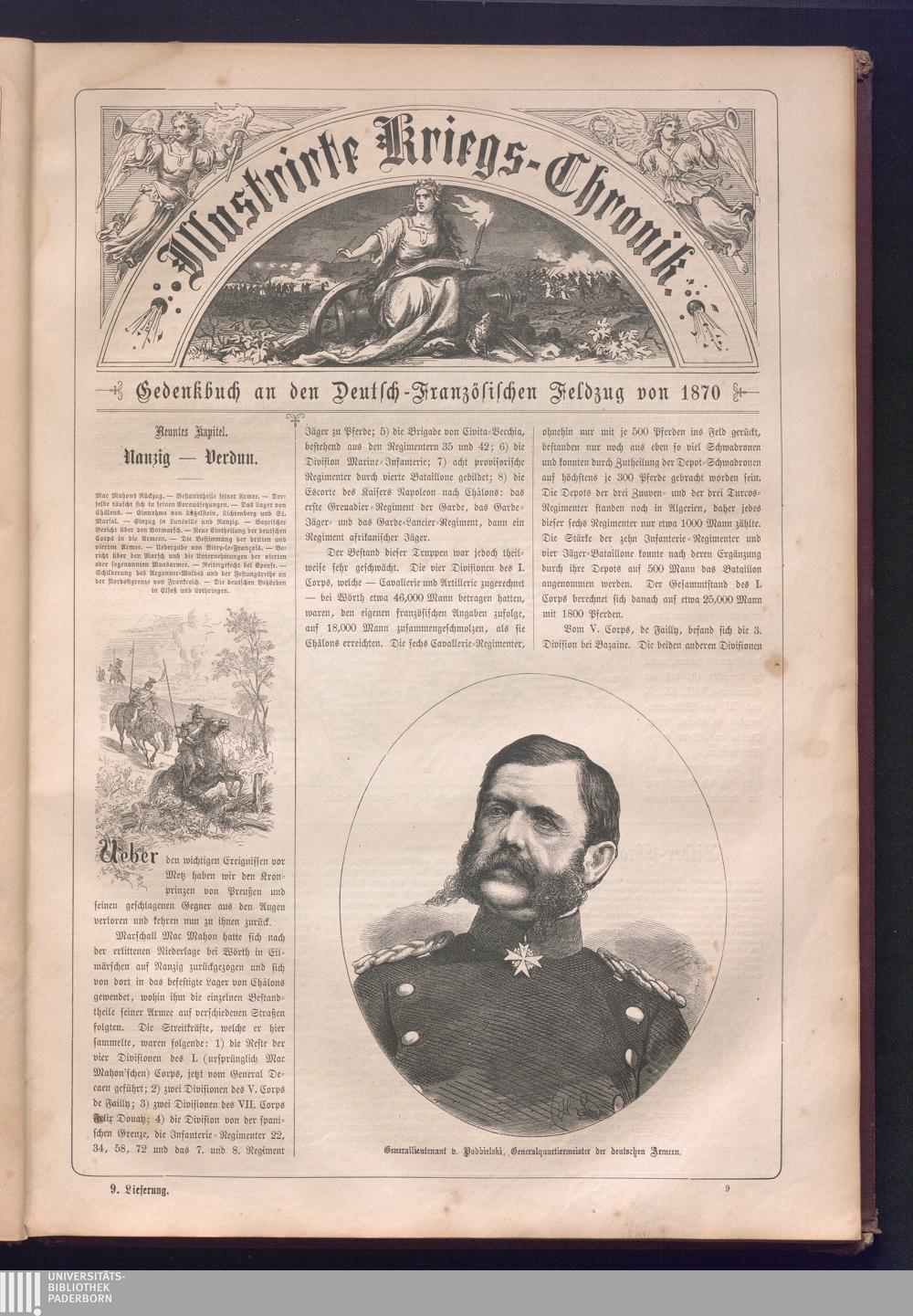 Illustrirte Kriegs-Chronik : Gedenkbuch an den Deutsch-Französischen Feldzug von 1870 - 1871 / Geschrieben vom Verfasser der Illustrirten Kriegs-Chronik von 1866 ; Initialen, Porträts, Kriegsbilder, Militär- und Marinebilder, Städteansichten, Karten und Pläne gezeichnet von den artistischen Mitarbeitern der Illustrirten Zeitung. [Hrsg. von Johann Jakob Weber] [Allegorisches Titelbild von C. Scheuren ; Titelblatt Friedr. Baumgarten]