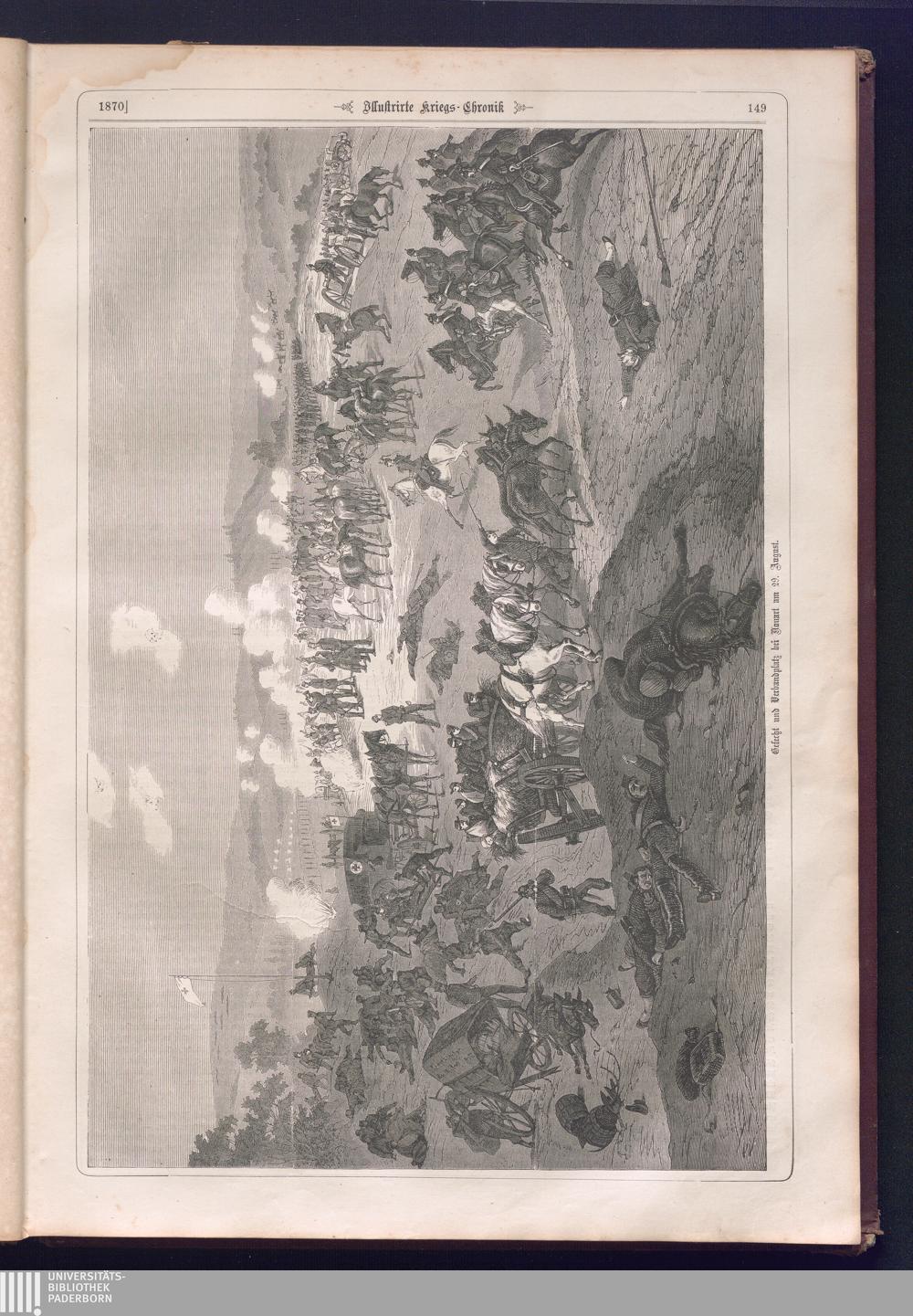 Illustrirte Kriegs-Chronik : Gedenkbuch an den Deutsch-Französischen Feldzug von 1870 - 1871 / Geschrieben vom Verfasser der Illustrirten Kriegs-Chronik von 1866 ; Initialen, Porträts, Kriegsbilder, Militär- und Marinebilder, Städteansichten, Karten und Pläne gezeichnet von den artistischen Mitarbeitern der Illustrirten Zeitung. [Hrsg. von Johann Jakob Weber] [Allegorisches Titelbild von C. Scheuren ; Titelblatt Friedr. Baumgarten]