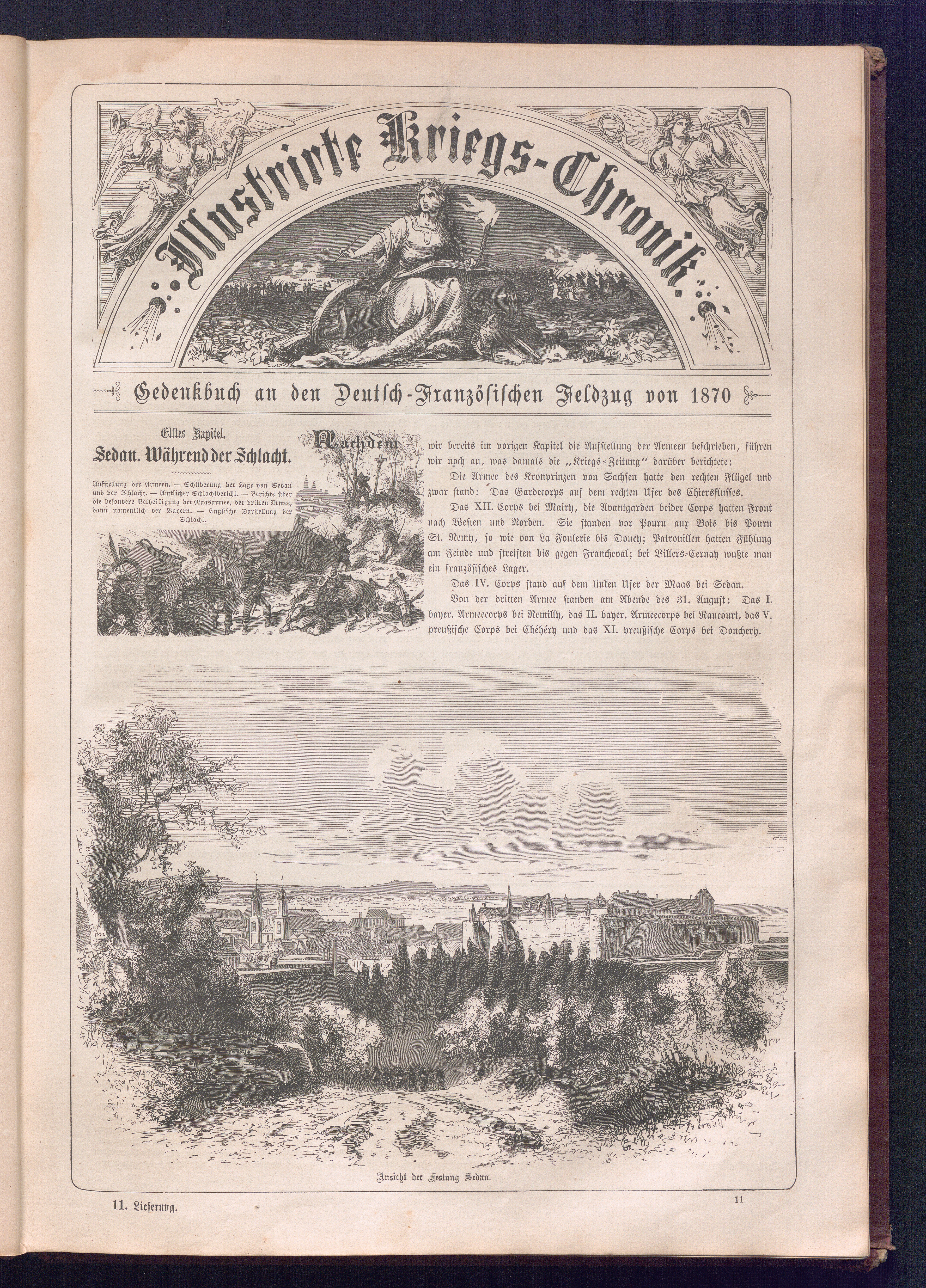 Illustrirte Kriegs-Chronik : Gedenkbuch an den Deutsch-Französischen Feldzug von 1870 - 1871 / Geschrieben vom Verfasser der Illustrirten Kriegs-Chronik von 1866 ; Initialen, Porträts, Kriegsbilder, Militär- und Marinebilder, Städteansichten, Karten und Pläne gezeichnet von den artistischen Mitarbeitern der Illustrirten Zeitung. [Hrsg. von Johann Jakob Weber] [Allegorisches Titelbild von C. Scheuren ; Titelblatt Friedr. Baumgarten]