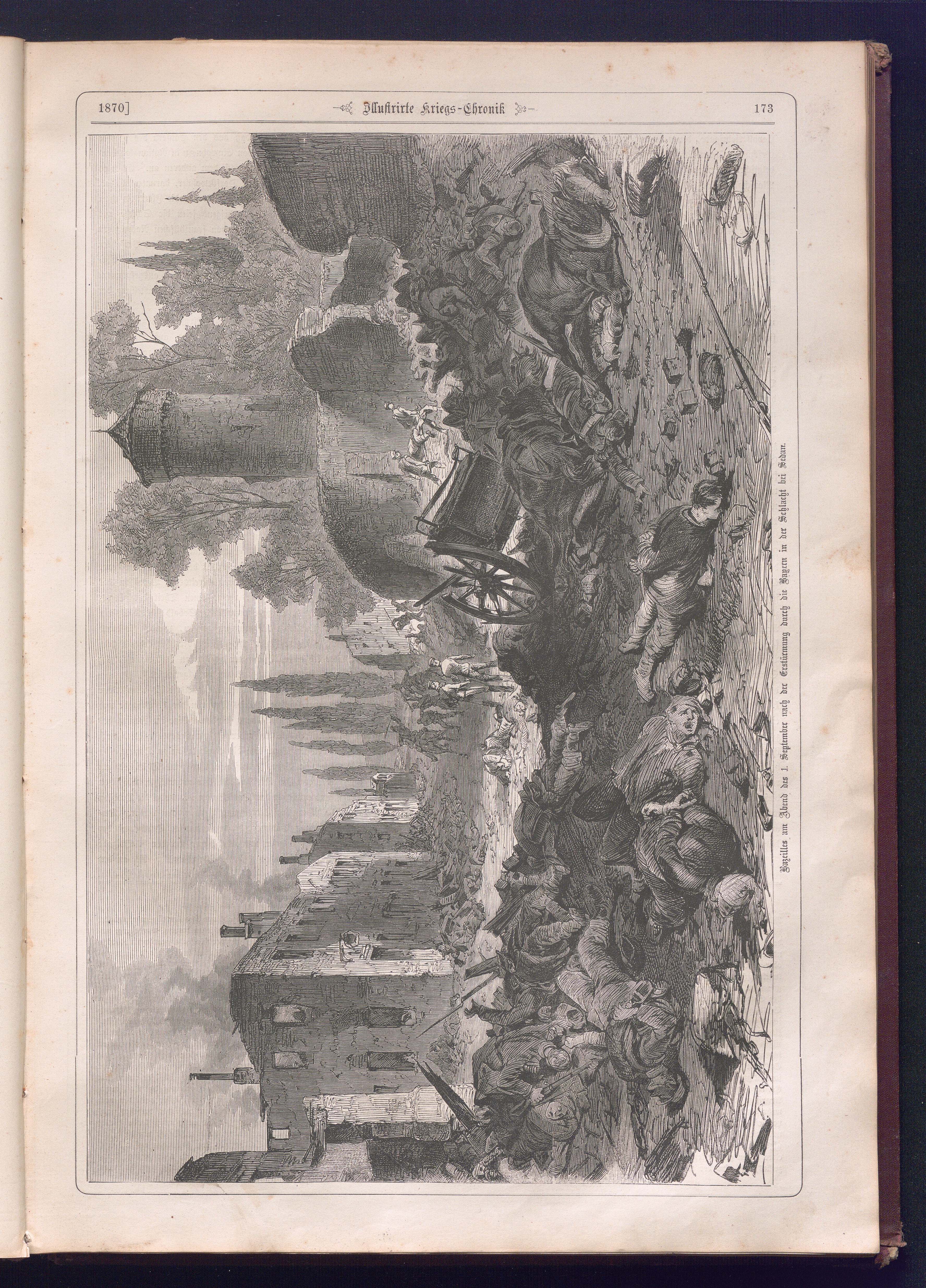 Illustrirte Kriegs-Chronik : Gedenkbuch an den Deutsch-Französischen Feldzug von 1870 - 1871 / Geschrieben vom Verfasser der Illustrirten Kriegs-Chronik von 1866 ; Initialen, Porträts, Kriegsbilder, Militär- und Marinebilder, Städteansichten, Karten und Pläne gezeichnet von den artistischen Mitarbeitern der Illustrirten Zeitung. [Hrsg. von Johann Jakob Weber] [Allegorisches Titelbild von C. Scheuren ; Titelblatt Friedr. Baumgarten]