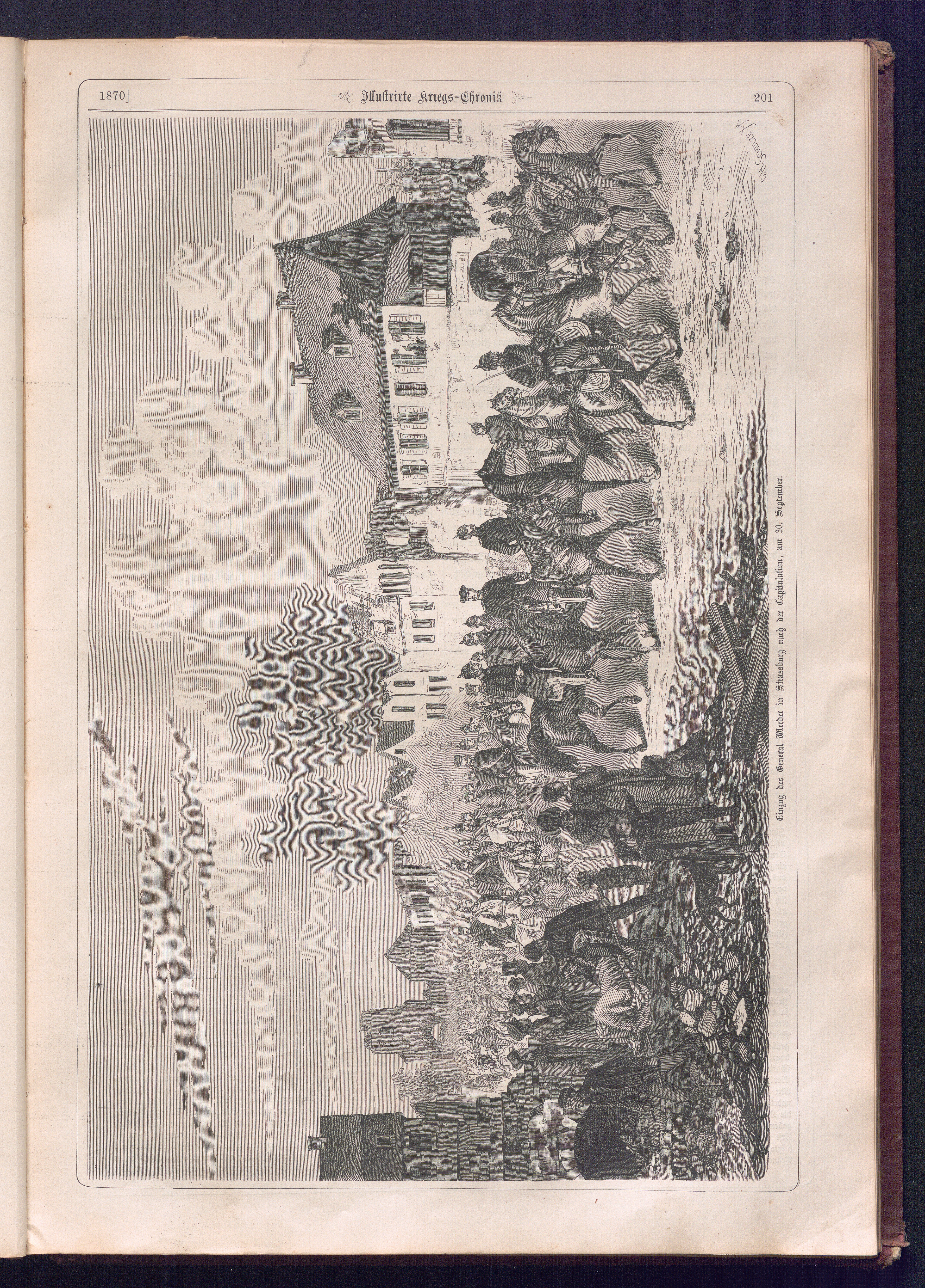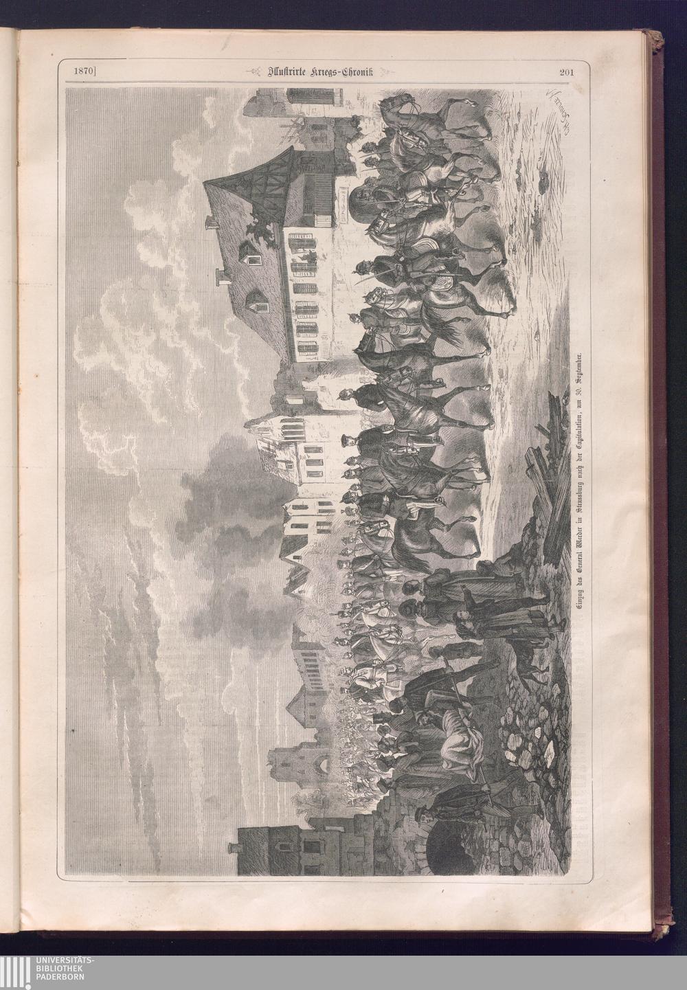 Illustrirte Kriegs-Chronik : Gedenkbuch an den Deutsch-Französischen Feldzug von 1870 - 1871 / Geschrieben vom Verfasser der Illustrirten Kriegs-Chronik von 1866 ; Initialen, Porträts, Kriegsbilder, Militär- und Marinebilder, Städteansichten, Karten und Pläne gezeichnet von den artistischen Mitarbeitern der Illustrirten Zeitung. [Hrsg. von Johann Jakob Weber] [Allegorisches Titelbild von C. Scheuren ; Titelblatt Friedr. Baumgarten]