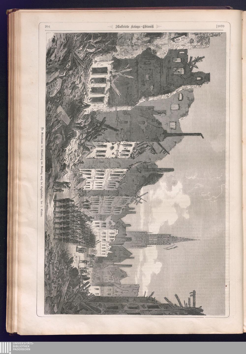 Illustrirte Kriegs-Chronik : Gedenkbuch an den Deutsch-Französischen Feldzug von 1870 - 1871 / Geschrieben vom Verfasser der Illustrirten Kriegs-Chronik von 1866 ; Initialen, Porträts, Kriegsbilder, Militär- und Marinebilder, Städteansichten, Karten und Pläne gezeichnet von den artistischen Mitarbeitern der Illustrirten Zeitung. [Hrsg. von Johann Jakob Weber] [Allegorisches Titelbild von C. Scheuren ; Titelblatt Friedr. Baumgarten]