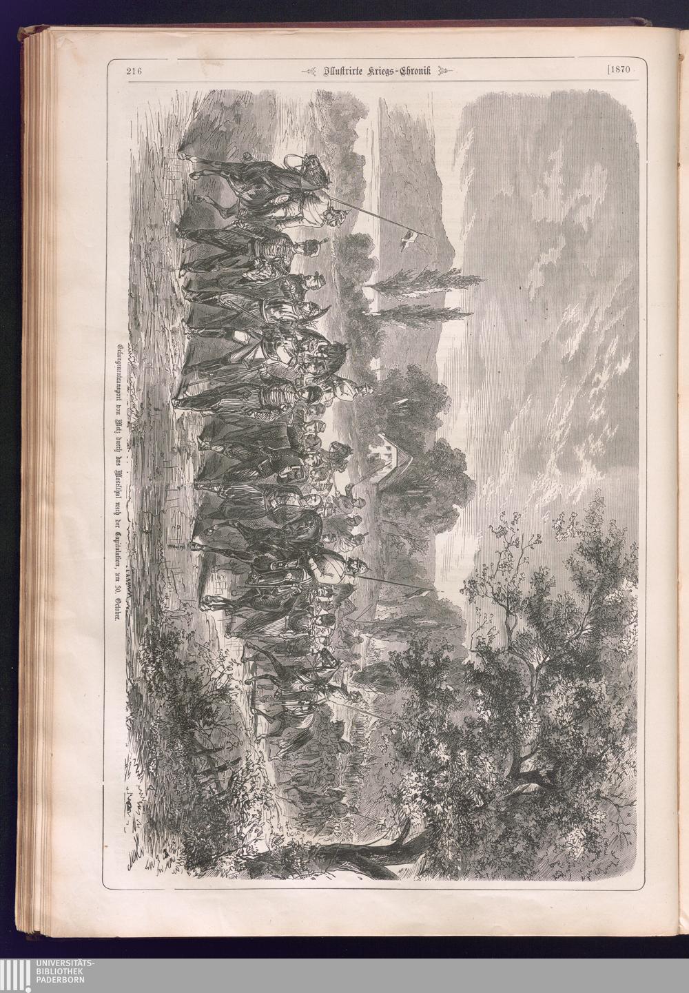 Illustrirte Kriegs-Chronik : Gedenkbuch an den Deutsch-Französischen Feldzug von 1870 - 1871 / Geschrieben vom Verfasser der Illustrirten Kriegs-Chronik von 1866 ; Initialen, Porträts, Kriegsbilder, Militär- und Marinebilder, Städteansichten, Karten und Pläne gezeichnet von den artistischen Mitarbeitern der Illustrirten Zeitung. [Hrsg. von Johann Jakob Weber] [Allegorisches Titelbild von C. Scheuren ; Titelblatt Friedr. Baumgarten]