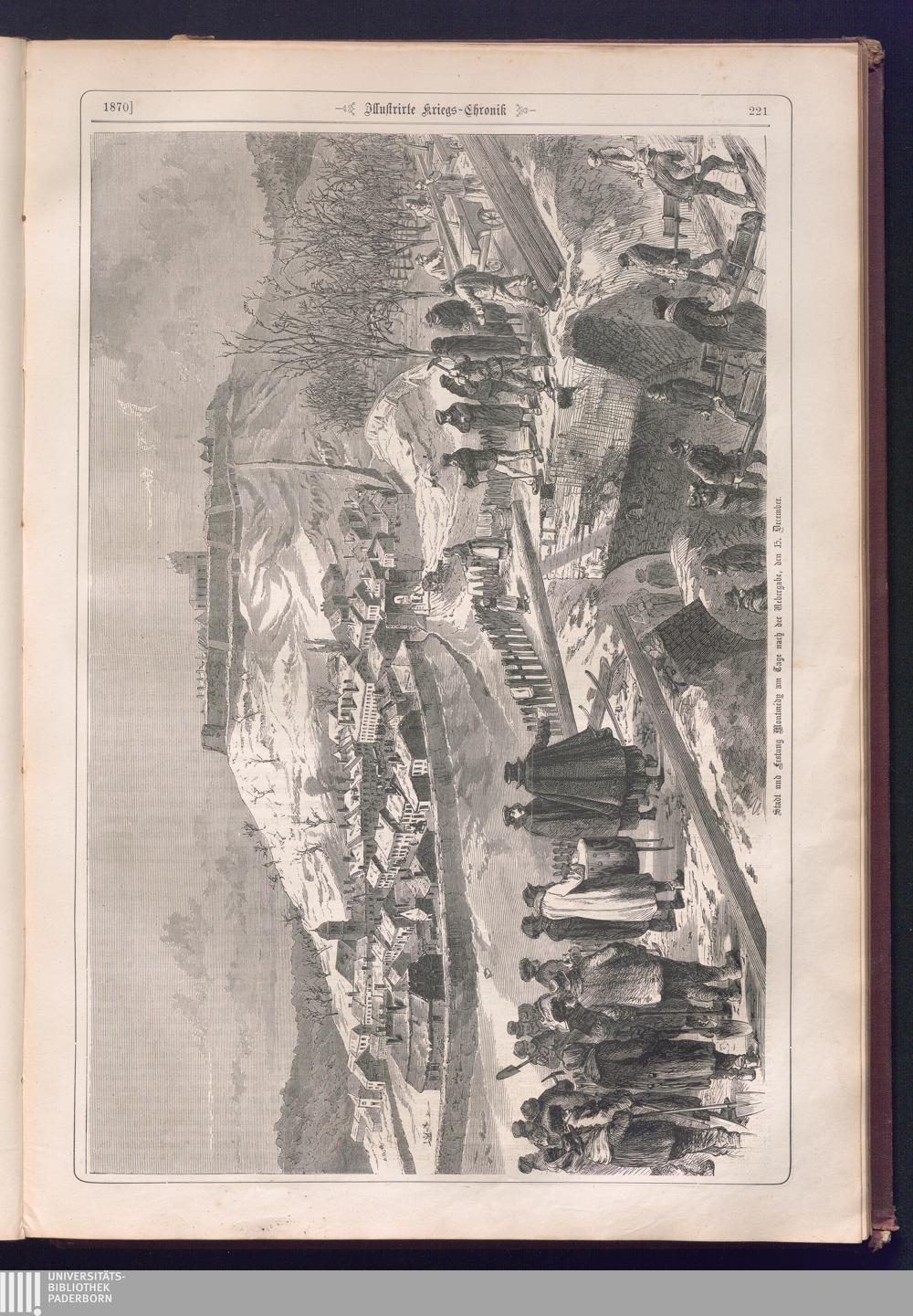 Illustrirte Kriegs-Chronik : Gedenkbuch an den Deutsch-Französischen Feldzug von 1870 - 1871 / Geschrieben vom Verfasser der Illustrirten Kriegs-Chronik von 1866 ; Initialen, Porträts, Kriegsbilder, Militär- und Marinebilder, Städteansichten, Karten und Pläne gezeichnet von den artistischen Mitarbeitern der Illustrirten Zeitung. [Hrsg. von Johann Jakob Weber] [Allegorisches Titelbild von C. Scheuren ; Titelblatt Friedr. Baumgarten]