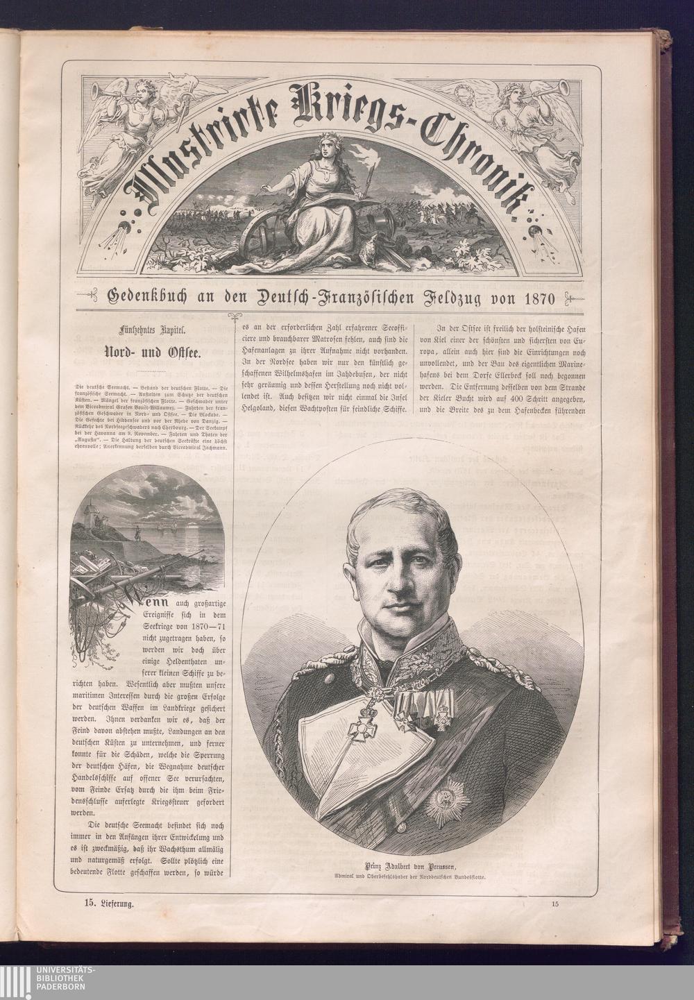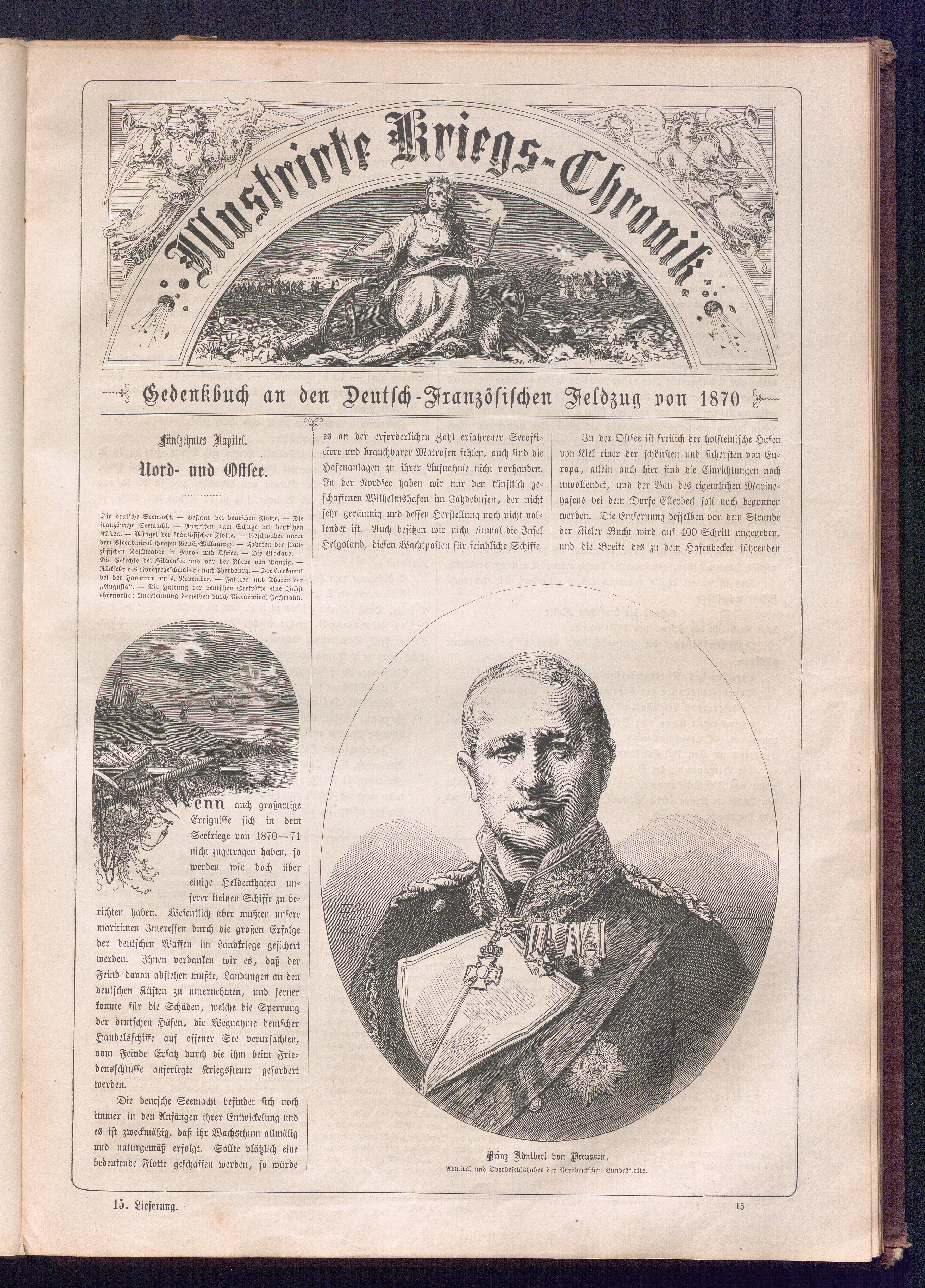 Illustrirte Kriegs-Chronik : Gedenkbuch an den Deutsch-Französischen Feldzug von 1870 - 1871 / Geschrieben vom Verfasser der Illustrirten Kriegs-Chronik von 1866 ; Initialen, Porträts, Kriegsbilder, Militär- und Marinebilder, Städteansichten, Karten und Pläne gezeichnet von den artistischen Mitarbeitern der Illustrirten Zeitung. [Hrsg. von Johann Jakob Weber] [Allegorisches Titelbild von C. Scheuren ; Titelblatt Friedr. Baumgarten]