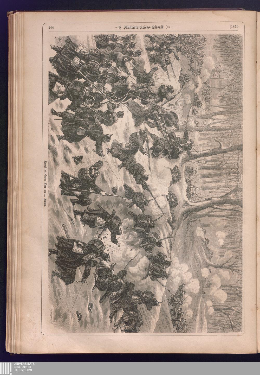 Illustrirte Kriegs-Chronik : Gedenkbuch an den Deutsch-Französischen Feldzug von 1870 - 1871 / Geschrieben vom Verfasser der Illustrirten Kriegs-Chronik von 1866 ; Initialen, Porträts, Kriegsbilder, Militär- und Marinebilder, Städteansichten, Karten und Pläne gezeichnet von den artistischen Mitarbeitern der Illustrirten Zeitung. [Hrsg. von Johann Jakob Weber] [Allegorisches Titelbild von C. Scheuren ; Titelblatt Friedr. Baumgarten]