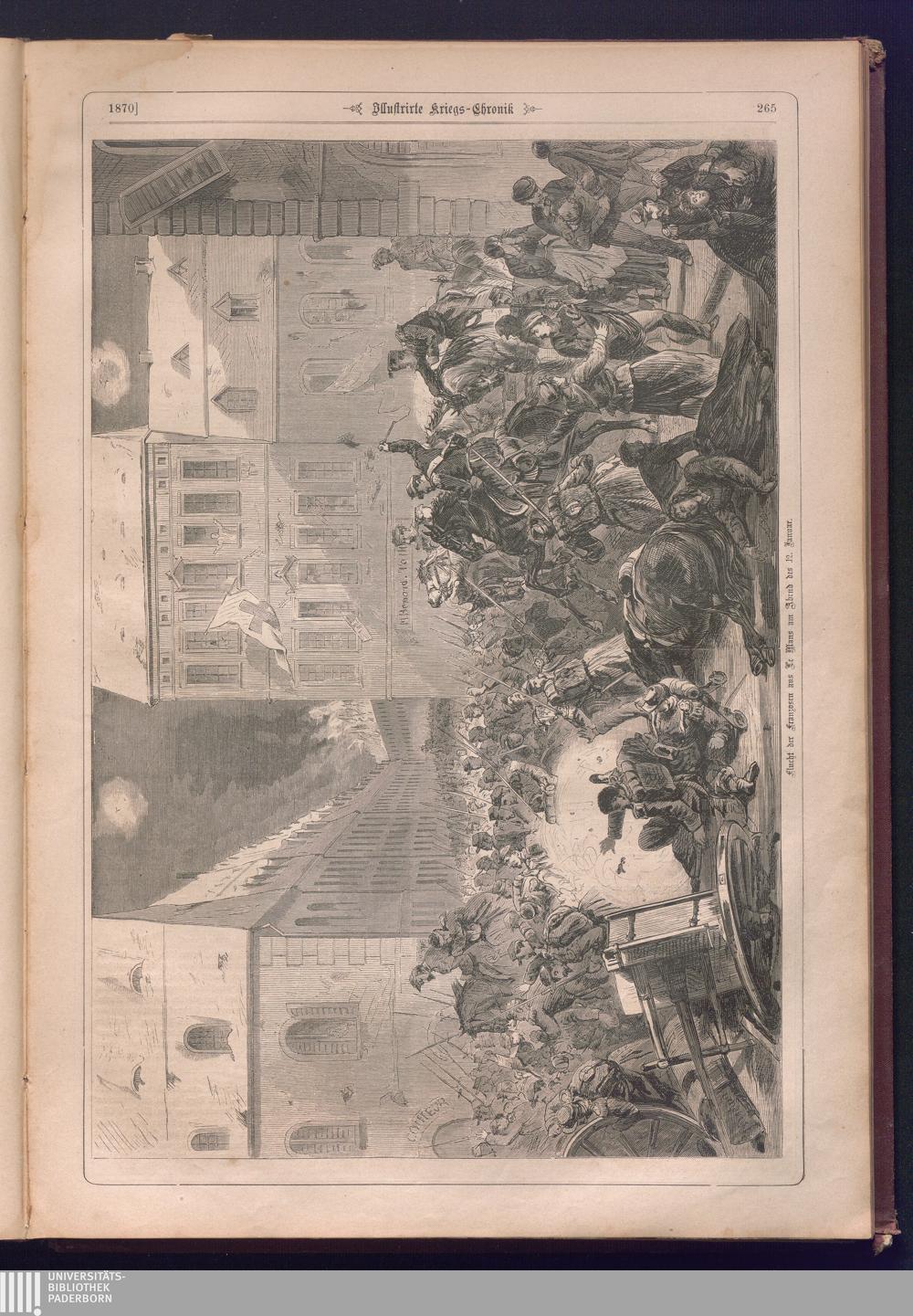Illustrirte Kriegs-Chronik : Gedenkbuch an den Deutsch-Französischen Feldzug von 1870 - 1871 / Geschrieben vom Verfasser der Illustrirten Kriegs-Chronik von 1866 ; Initialen, Porträts, Kriegsbilder, Militär- und Marinebilder, Städteansichten, Karten und Pläne gezeichnet von den artistischen Mitarbeitern der Illustrirten Zeitung. [Hrsg. von Johann Jakob Weber] [Allegorisches Titelbild von C. Scheuren ; Titelblatt Friedr. Baumgarten]