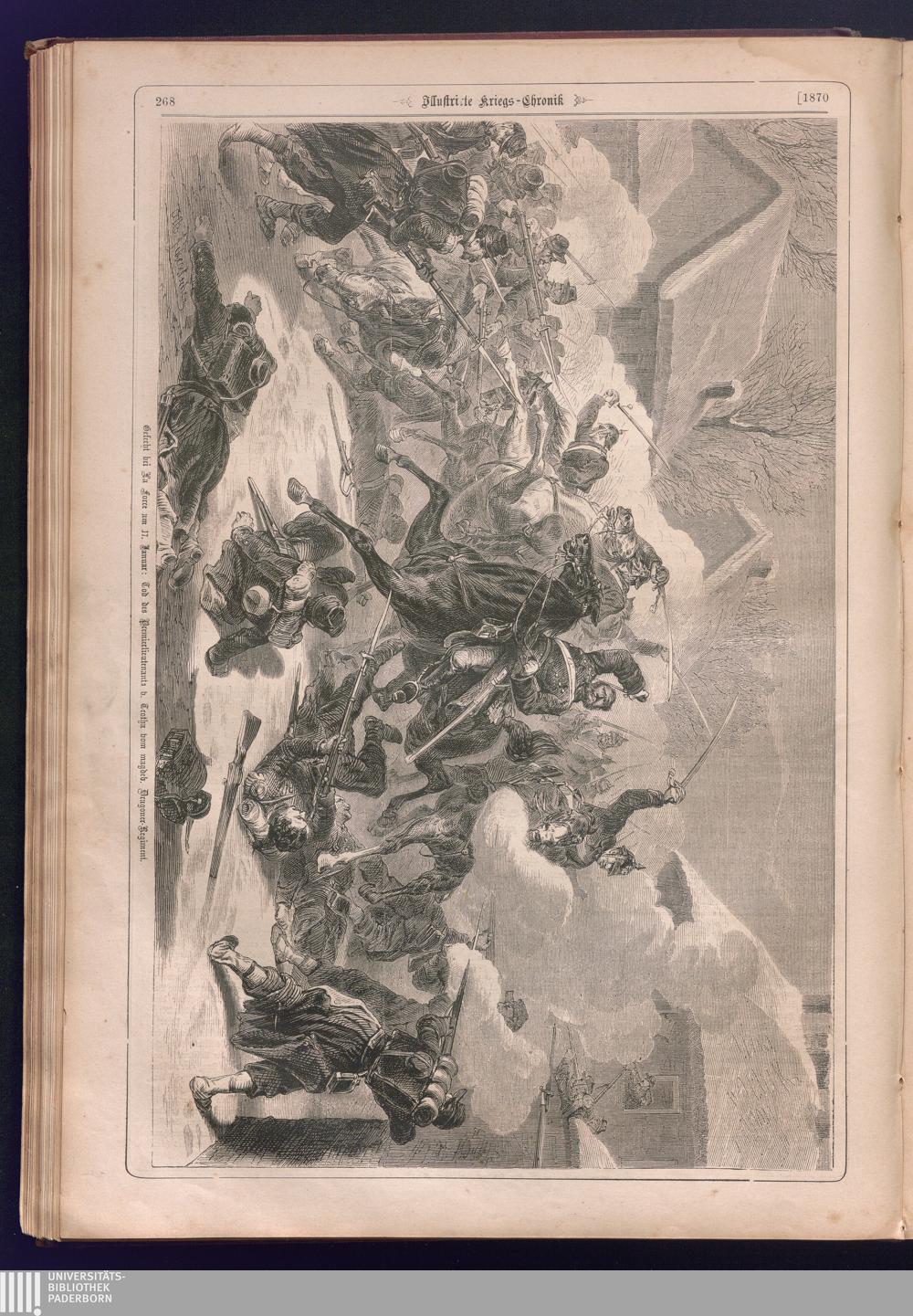 Illustrirte Kriegs-Chronik : Gedenkbuch an den Deutsch-Französischen Feldzug von 1870 - 1871 / Geschrieben vom Verfasser der Illustrirten Kriegs-Chronik von 1866 ; Initialen, Porträts, Kriegsbilder, Militär- und Marinebilder, Städteansichten, Karten und Pläne gezeichnet von den artistischen Mitarbeitern der Illustrirten Zeitung. [Hrsg. von Johann Jakob Weber] [Allegorisches Titelbild von C. Scheuren ; Titelblatt Friedr. Baumgarten]