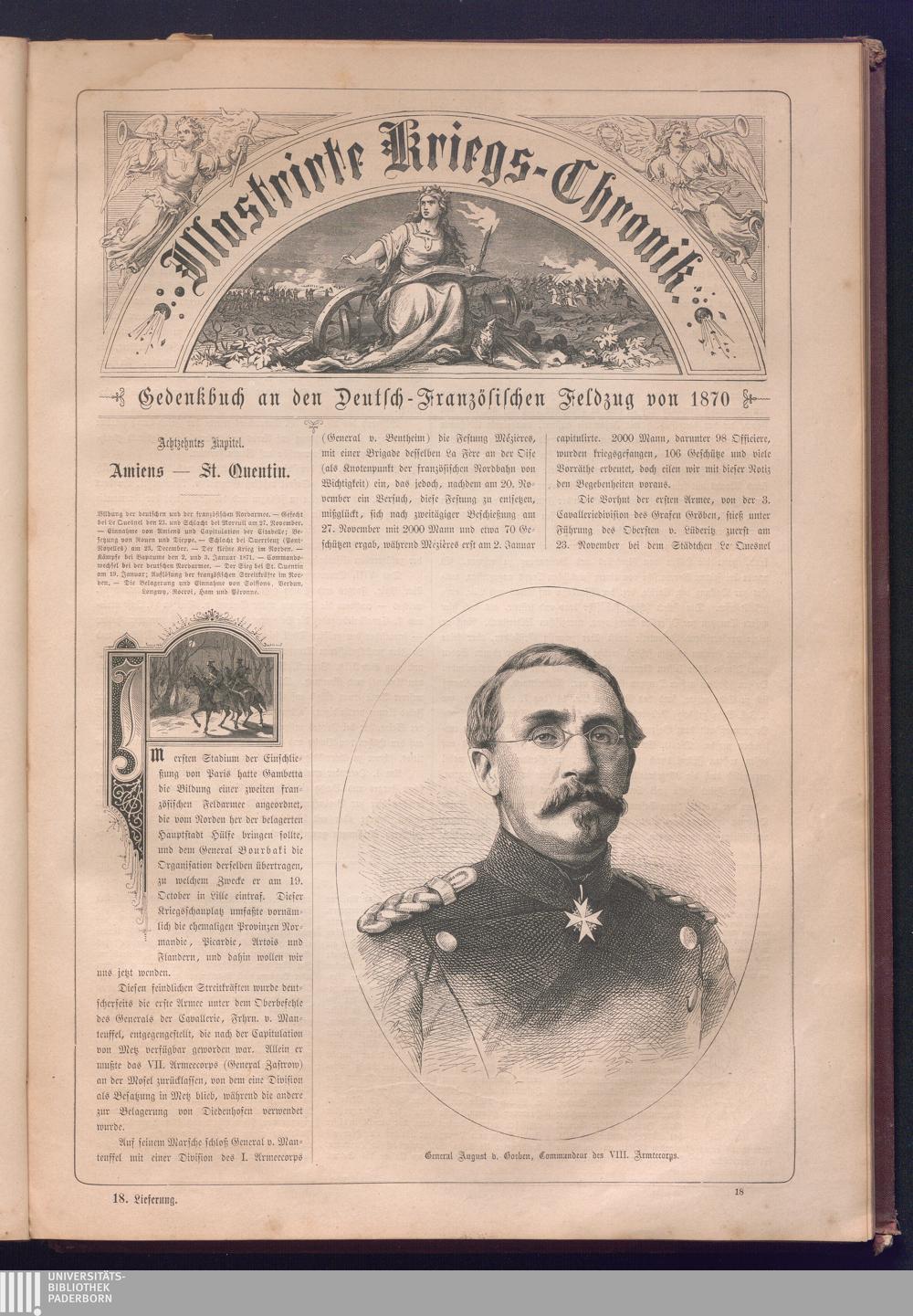 Illustrirte Kriegs-Chronik : Gedenkbuch an den Deutsch-Französischen Feldzug von 1870 - 1871 / Geschrieben vom Verfasser der Illustrirten Kriegs-Chronik von 1866 ; Initialen, Porträts, Kriegsbilder, Militär- und Marinebilder, Städteansichten, Karten und Pläne gezeichnet von den artistischen Mitarbeitern der Illustrirten Zeitung. [Hrsg. von Johann Jakob Weber] [Allegorisches Titelbild von C. Scheuren ; Titelblatt Friedr. Baumgarten]