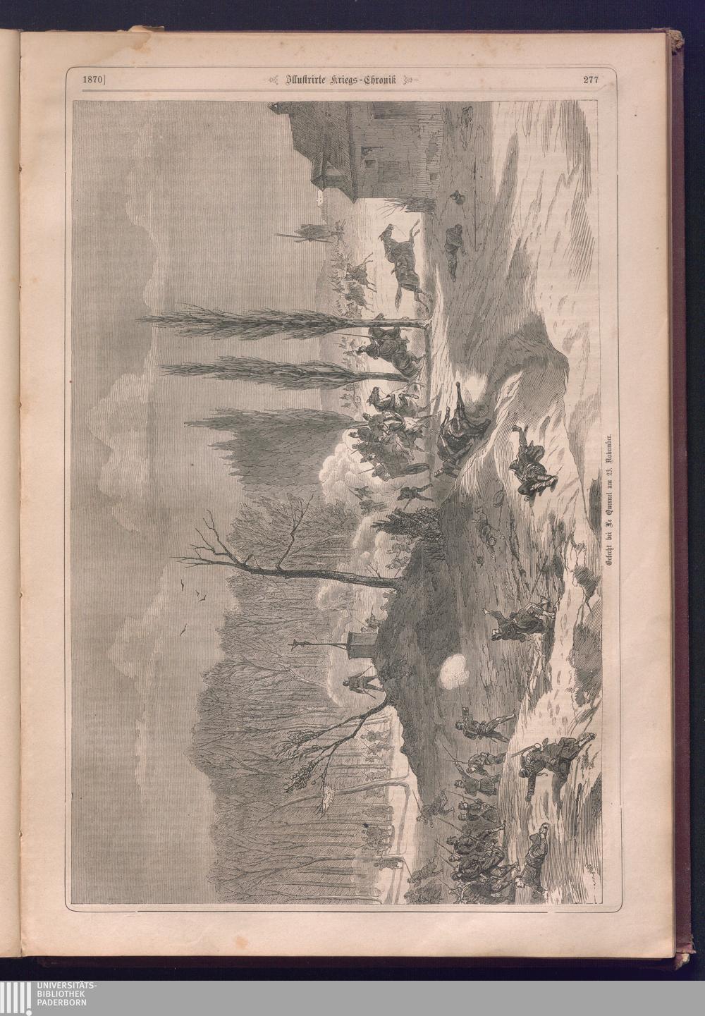 Illustrirte Kriegs-Chronik : Gedenkbuch an den Deutsch-Französischen Feldzug von 1870 - 1871 / Geschrieben vom Verfasser der Illustrirten Kriegs-Chronik von 1866 ; Initialen, Porträts, Kriegsbilder, Militär- und Marinebilder, Städteansichten, Karten und Pläne gezeichnet von den artistischen Mitarbeitern der Illustrirten Zeitung. [Hrsg. von Johann Jakob Weber] [Allegorisches Titelbild von C. Scheuren ; Titelblatt Friedr. Baumgarten]