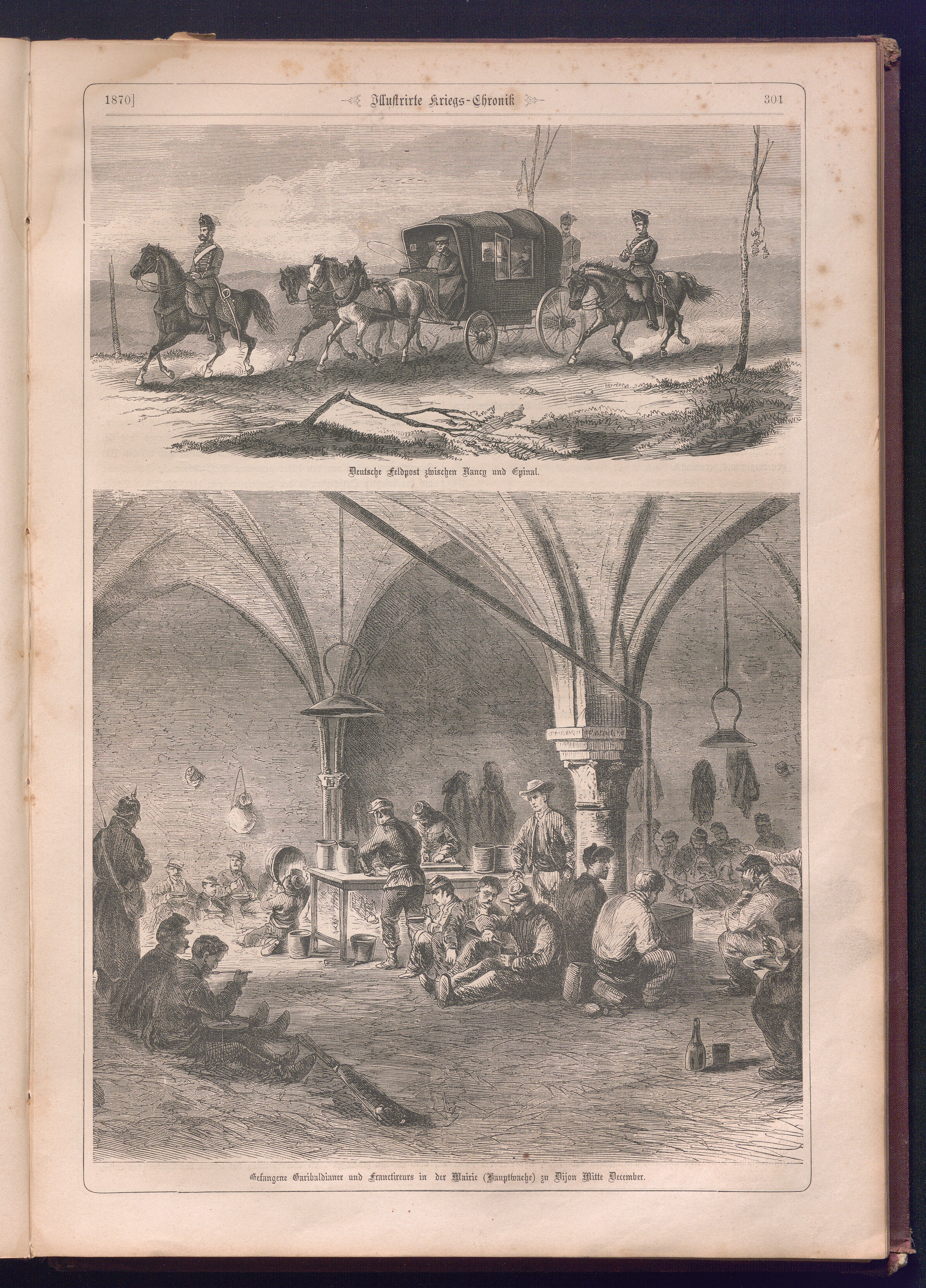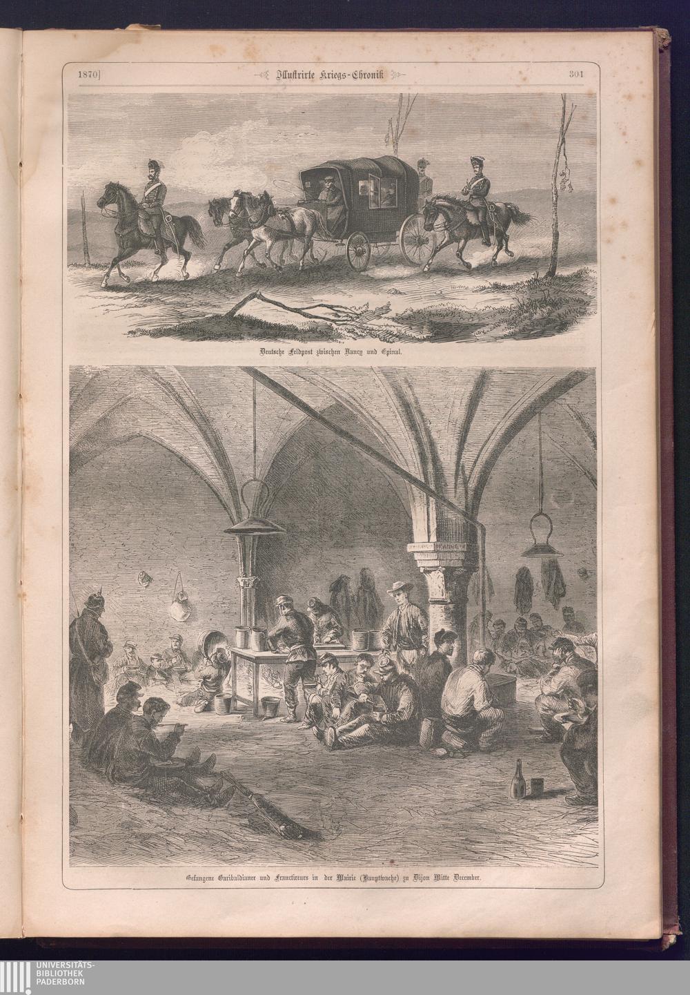 Illustrirte Kriegs-Chronik : Gedenkbuch an den Deutsch-Französischen Feldzug von 1870 - 1871 / Geschrieben vom Verfasser der Illustrirten Kriegs-Chronik von 1866 ; Initialen, Porträts, Kriegsbilder, Militär- und Marinebilder, Städteansichten, Karten und Pläne gezeichnet von den artistischen Mitarbeitern der Illustrirten Zeitung. [Hrsg. von Johann Jakob Weber] [Allegorisches Titelbild von C. Scheuren ; Titelblatt Friedr. Baumgarten]