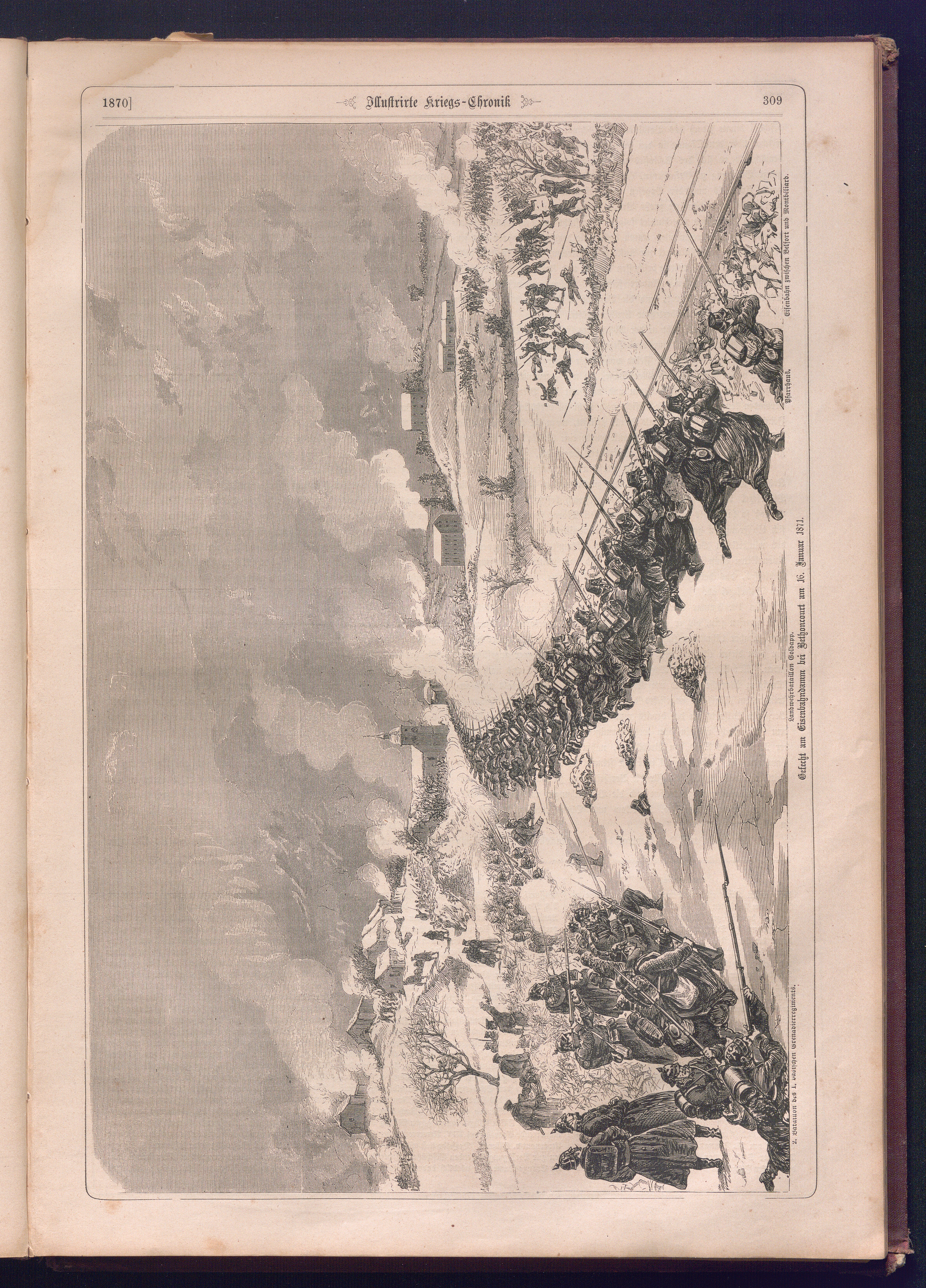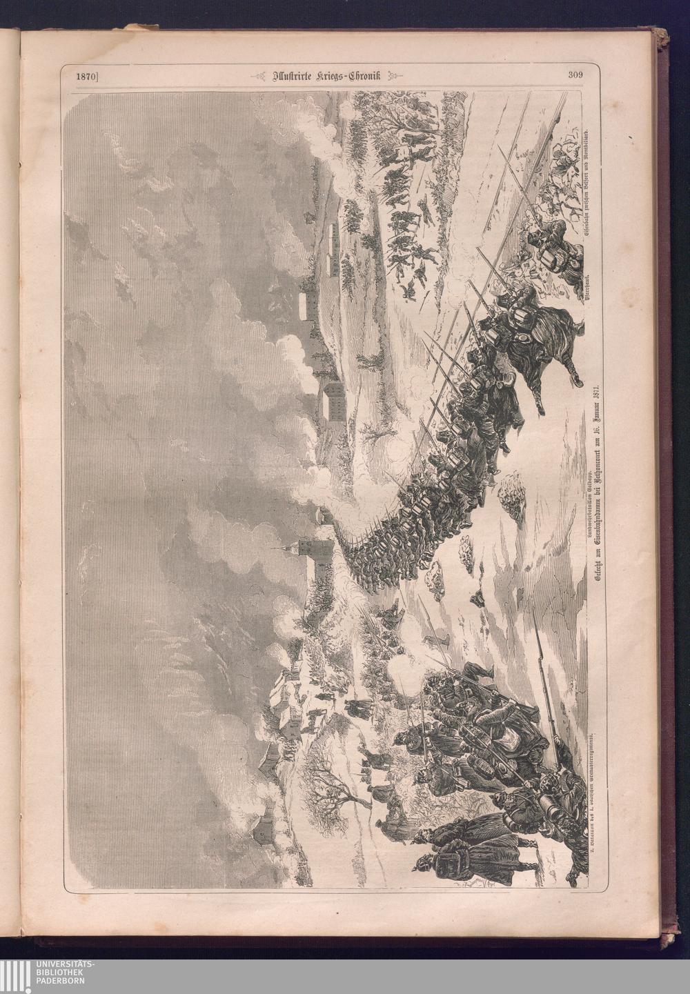 Illustrirte Kriegs-Chronik : Gedenkbuch an den Deutsch-Französischen Feldzug von 1870 - 1871 / Geschrieben vom Verfasser der Illustrirten Kriegs-Chronik von 1866 ; Initialen, Porträts, Kriegsbilder, Militär- und Marinebilder, Städteansichten, Karten und Pläne gezeichnet von den artistischen Mitarbeitern der Illustrirten Zeitung. [Hrsg. von Johann Jakob Weber] [Allegorisches Titelbild von C. Scheuren ; Titelblatt Friedr. Baumgarten]