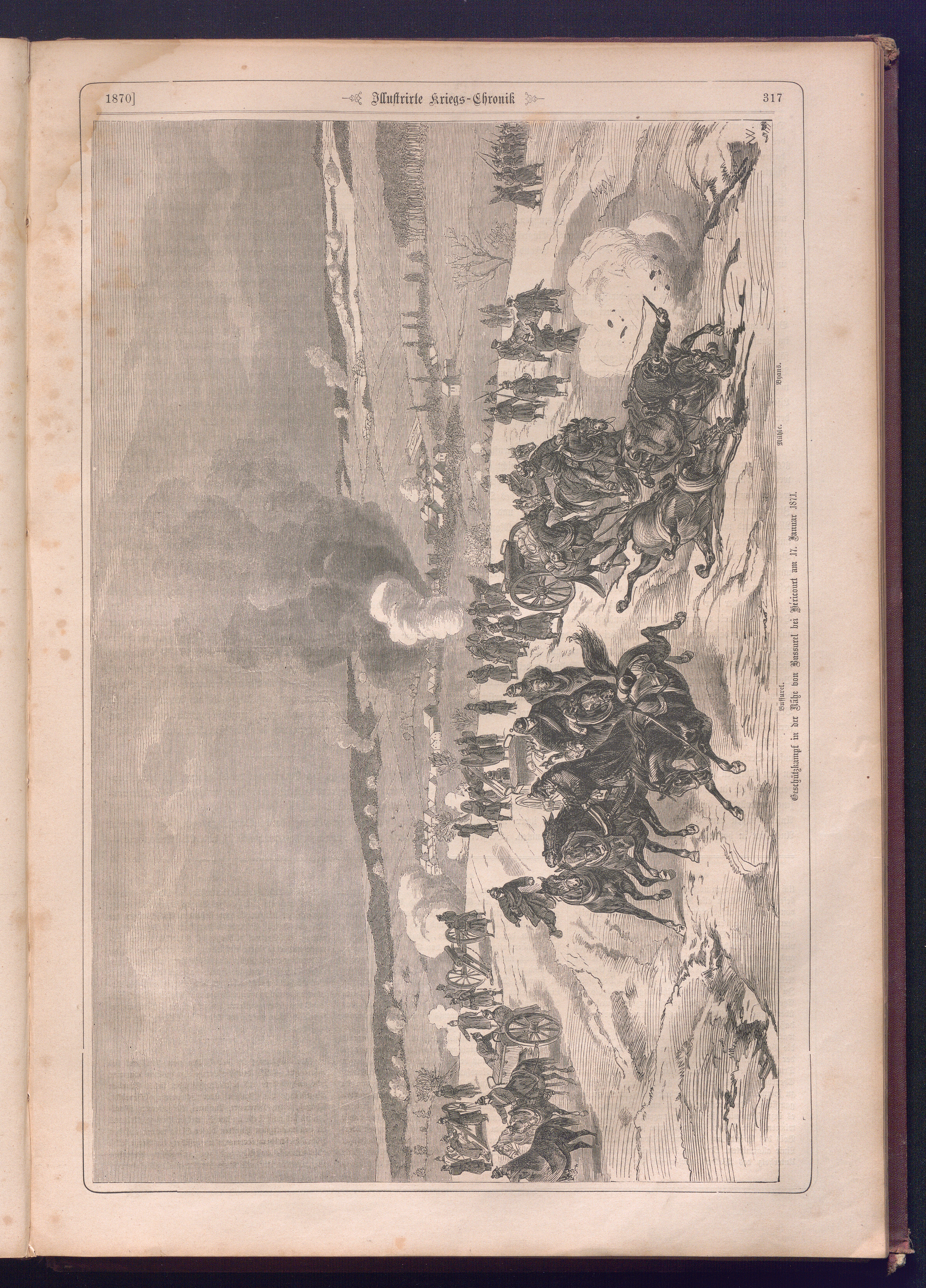 Illustrirte Kriegs-Chronik : Gedenkbuch an den Deutsch-Französischen Feldzug von 1870 - 1871 / Geschrieben vom Verfasser der Illustrirten Kriegs-Chronik von 1866 ; Initialen, Porträts, Kriegsbilder, Militär- und Marinebilder, Städteansichten, Karten und Pläne gezeichnet von den artistischen Mitarbeitern der Illustrirten Zeitung. [Hrsg. von Johann Jakob Weber] [Allegorisches Titelbild von C. Scheuren ; Titelblatt Friedr. Baumgarten]