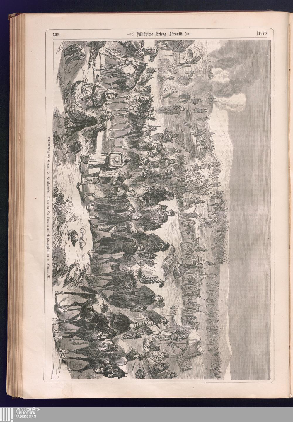 Illustrirte Kriegs-Chronik : Gedenkbuch an den Deutsch-Französischen Feldzug von 1870 - 1871 / Geschrieben vom Verfasser der Illustrirten Kriegs-Chronik von 1866 ; Initialen, Porträts, Kriegsbilder, Militär- und Marinebilder, Städteansichten, Karten und Pläne gezeichnet von den artistischen Mitarbeitern der Illustrirten Zeitung. [Hrsg. von Johann Jakob Weber] [Allegorisches Titelbild von C. Scheuren ; Titelblatt Friedr. Baumgarten]