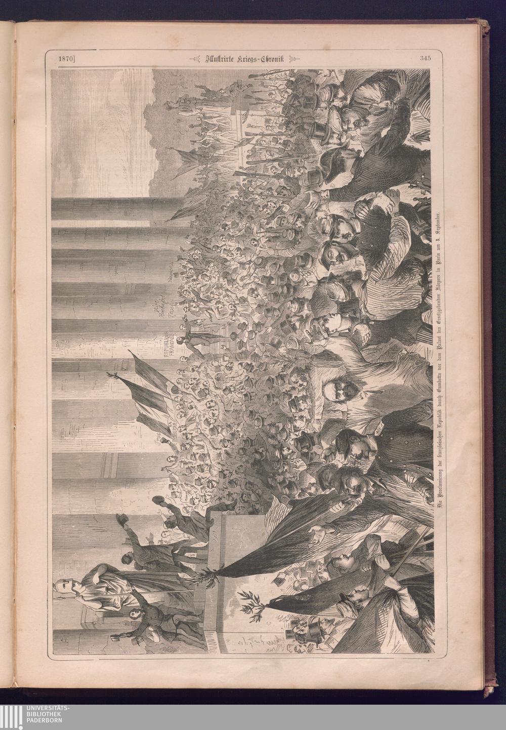 Illustrirte Kriegs-Chronik : Gedenkbuch an den Deutsch-Französischen Feldzug von 1870 - 1871 / Geschrieben vom Verfasser der Illustrirten Kriegs-Chronik von 1866 ; Initialen, Porträts, Kriegsbilder, Militär- und Marinebilder, Städteansichten, Karten und Pläne gezeichnet von den artistischen Mitarbeitern der Illustrirten Zeitung. [Hrsg. von Johann Jakob Weber] [Allegorisches Titelbild von C. Scheuren ; Titelblatt Friedr. Baumgarten]