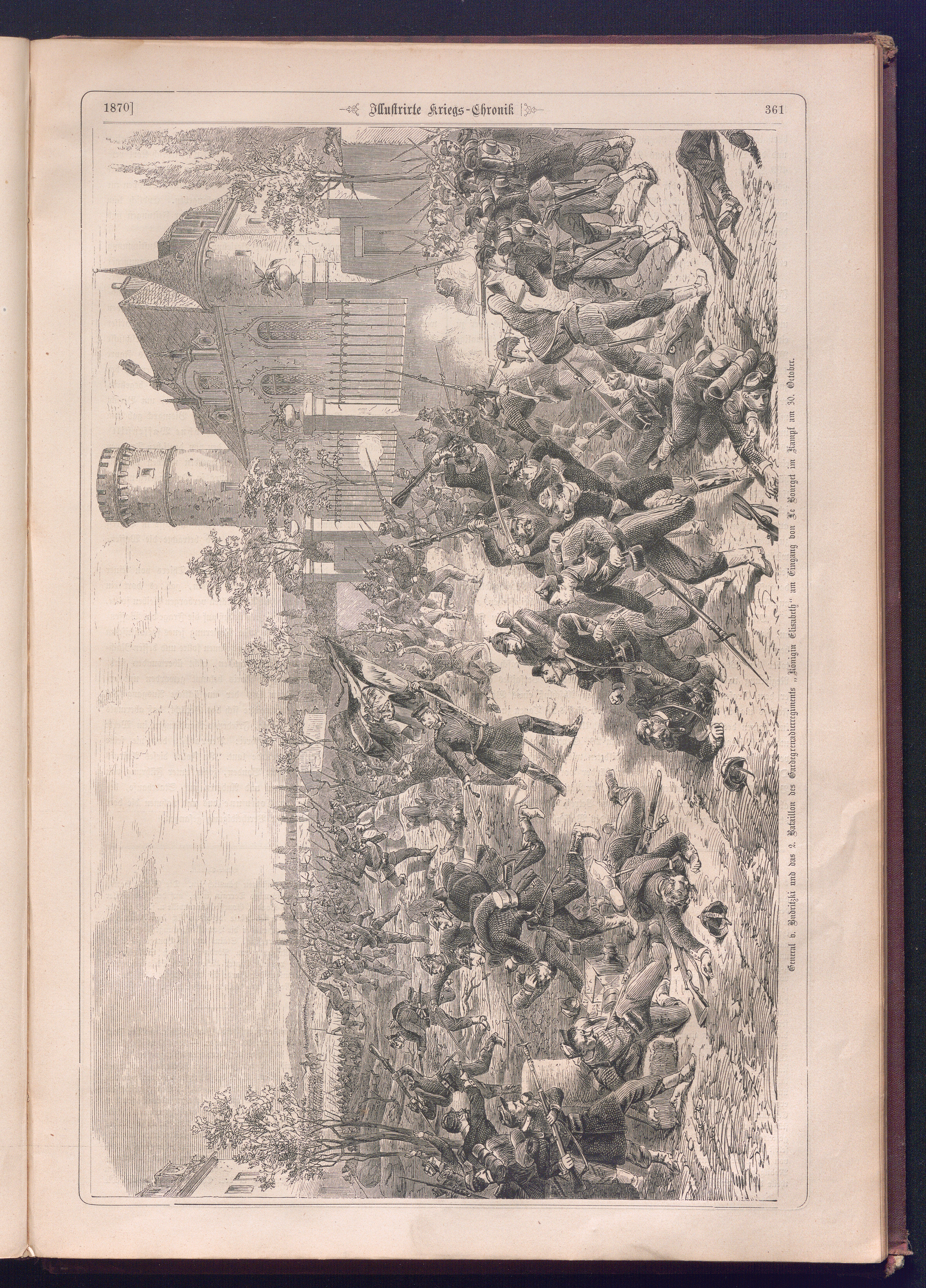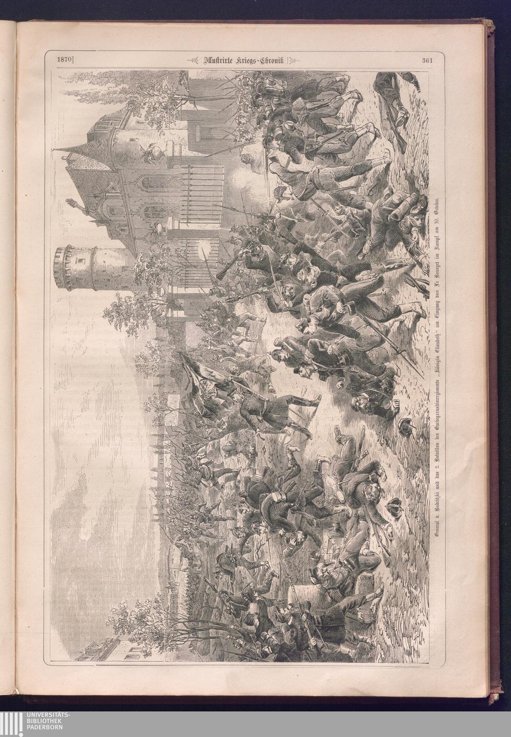 Illustrirte Kriegs-Chronik : Gedenkbuch an den Deutsch-Französischen Feldzug von 1870 - 1871 / Geschrieben vom Verfasser der Illustrirten Kriegs-Chronik von 1866 ; Initialen, Porträts, Kriegsbilder, Militär- und Marinebilder, Städteansichten, Karten und Pläne gezeichnet von den artistischen Mitarbeitern der Illustrirten Zeitung. [Hrsg. von Johann Jakob Weber] [Allegorisches Titelbild von C. Scheuren ; Titelblatt Friedr. Baumgarten]