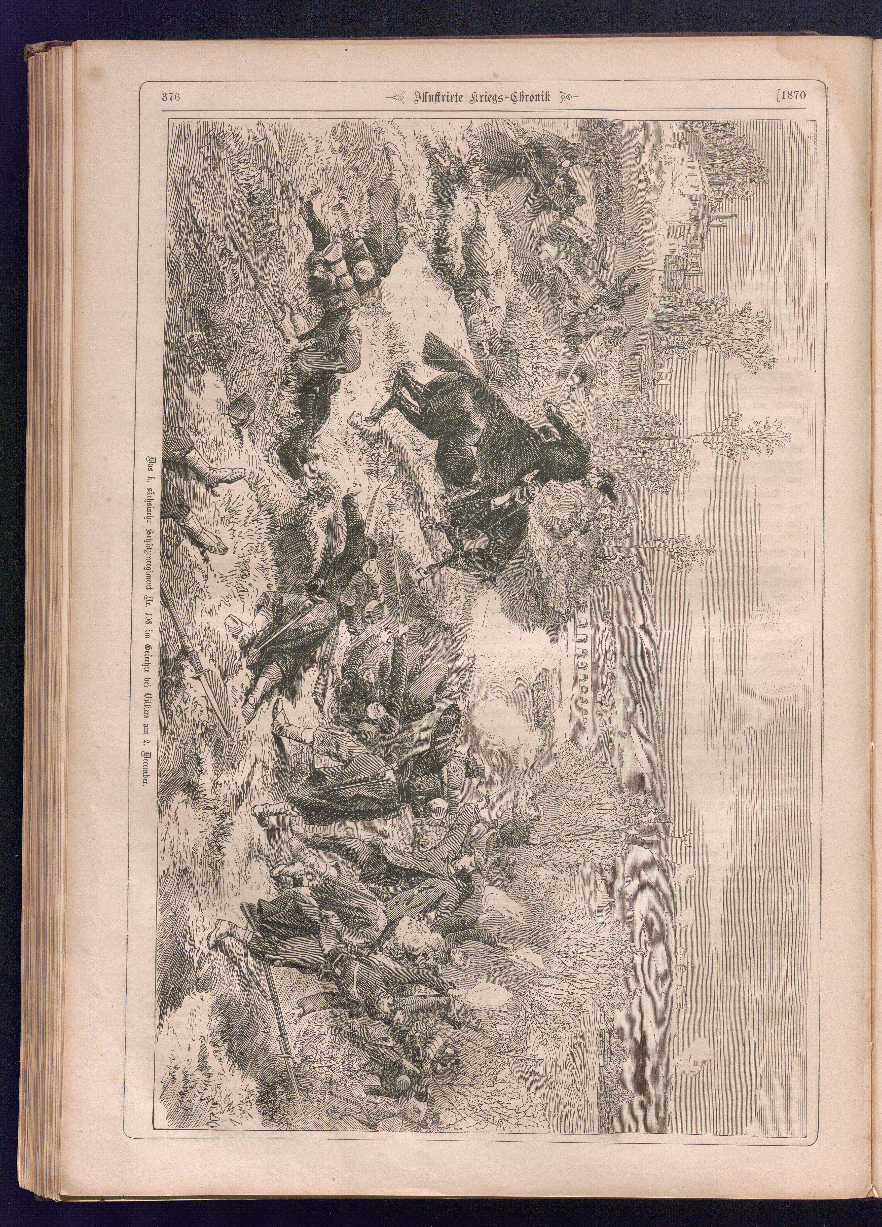 Illustrirte Kriegs-Chronik : Gedenkbuch an den Deutsch-Französischen Feldzug von 1870 - 1871 / Geschrieben vom Verfasser der Illustrirten Kriegs-Chronik von 1866 ; Initialen, Porträts, Kriegsbilder, Militär- und Marinebilder, Städteansichten, Karten und Pläne gezeichnet von den artistischen Mitarbeitern der Illustrirten Zeitung. [Hrsg. von Johann Jakob Weber] [Allegorisches Titelbild von C. Scheuren ; Titelblatt Friedr. Baumgarten]