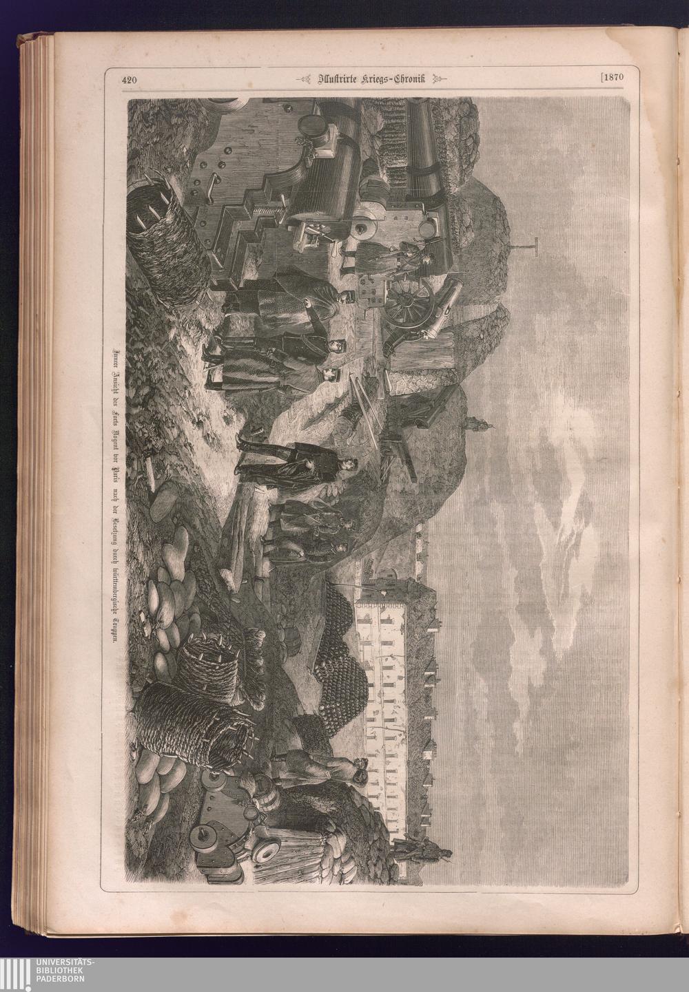 Illustrirte Kriegs-Chronik : Gedenkbuch an den Deutsch-Französischen Feldzug von 1870 - 1871 / Geschrieben vom Verfasser der Illustrirten Kriegs-Chronik von 1866 ; Initialen, Porträts, Kriegsbilder, Militär- und Marinebilder, Städteansichten, Karten und Pläne gezeichnet von den artistischen Mitarbeitern der Illustrirten Zeitung. [Hrsg. von Johann Jakob Weber] [Allegorisches Titelbild von C. Scheuren ; Titelblatt Friedr. Baumgarten]