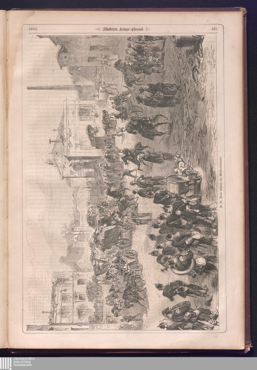 Illustrirte Kriegs-Chronik : Gedenkbuch an den Deutsch-Französischen Feldzug von 1870 - 1871 / Geschrieben vom Verfasser der Illustrirten Kriegs-Chronik von 1866 ; Initialen, Porträts, Kriegsbilder, Militär- und Marinebilder, Städteansichten, Karten und Pläne gezeichnet von den artistischen Mitarbeitern der Illustrirten Zeitung. [Hrsg. von Johann Jakob Weber] [Allegorisches Titelbild von C. Scheuren ; Titelblatt Friedr. Baumgarten]