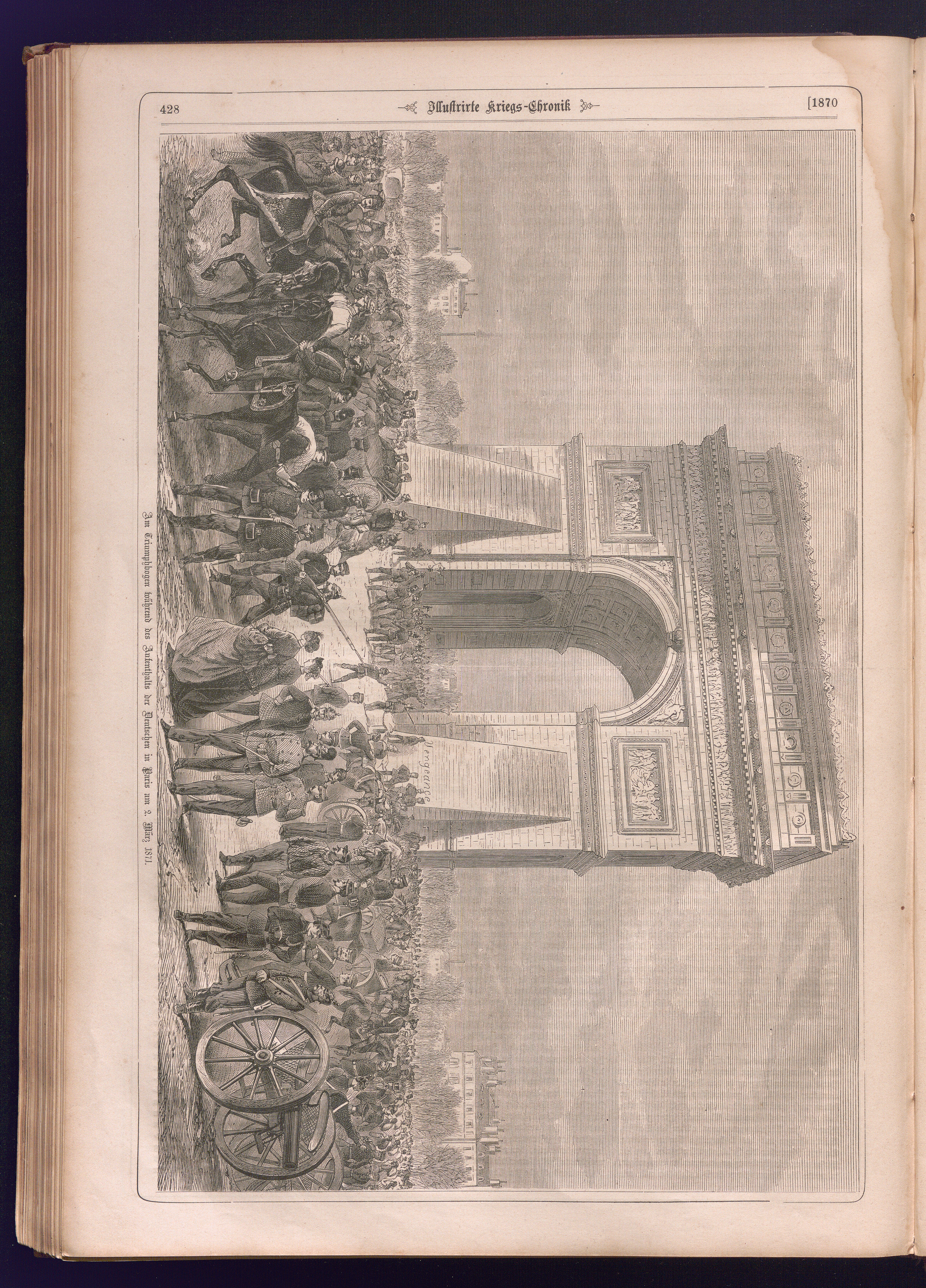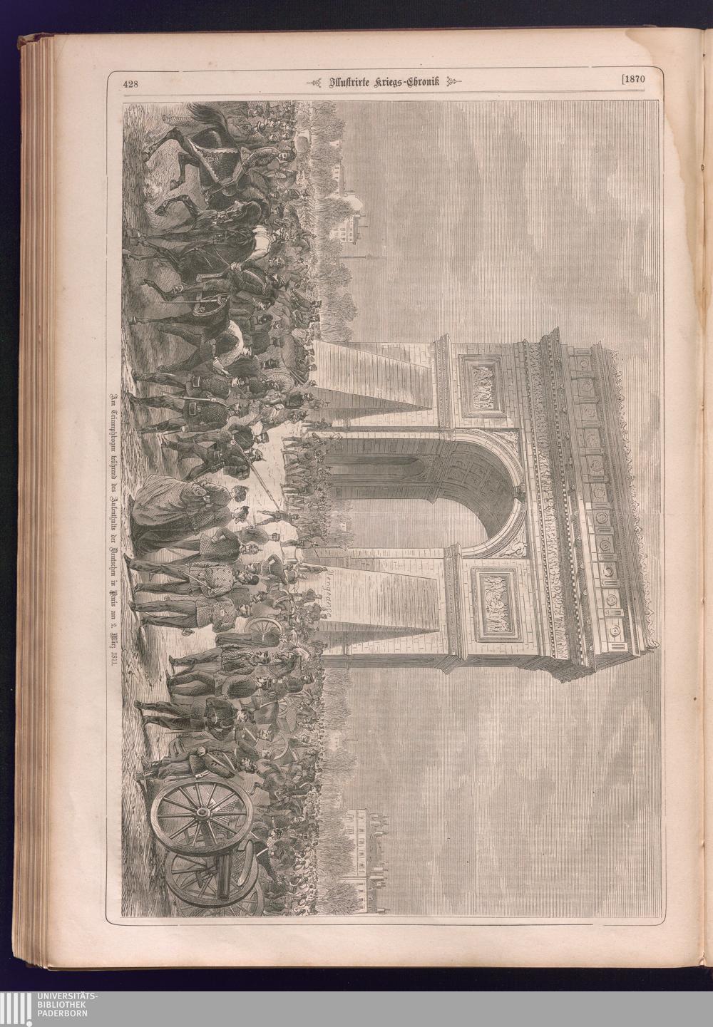 Illustrirte Kriegs-Chronik : Gedenkbuch an den Deutsch-Französischen Feldzug von 1870 - 1871 / Geschrieben vom Verfasser der Illustrirten Kriegs-Chronik von 1866 ; Initialen, Porträts, Kriegsbilder, Militär- und Marinebilder, Städteansichten, Karten und Pläne gezeichnet von den artistischen Mitarbeitern der Illustrirten Zeitung. [Hrsg. von Johann Jakob Weber] [Allegorisches Titelbild von C. Scheuren ; Titelblatt Friedr. Baumgarten]