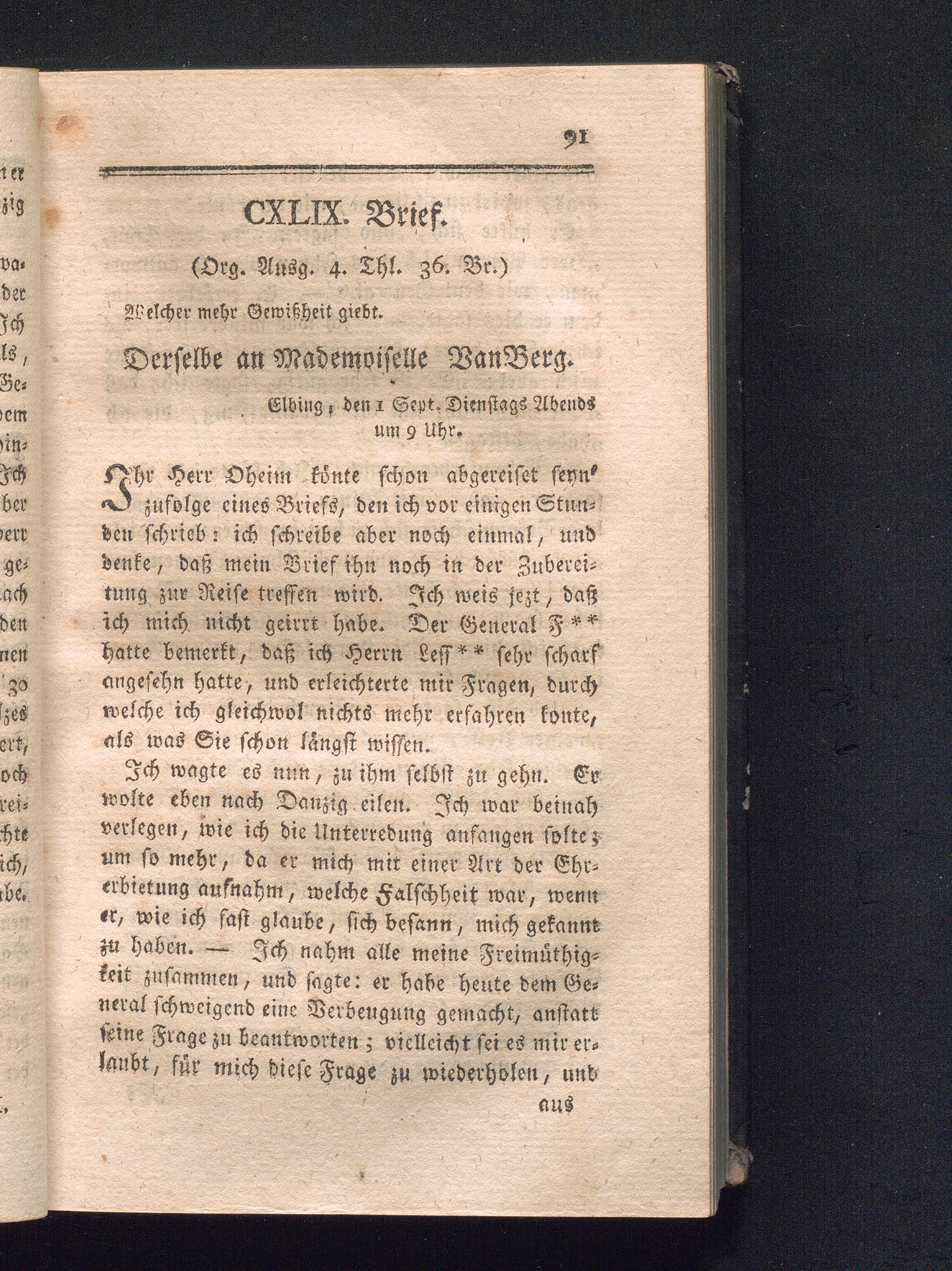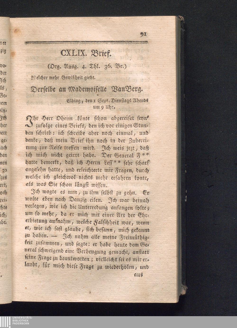 CXLIX. Brief, welcher mehr Gewißheit giebt.