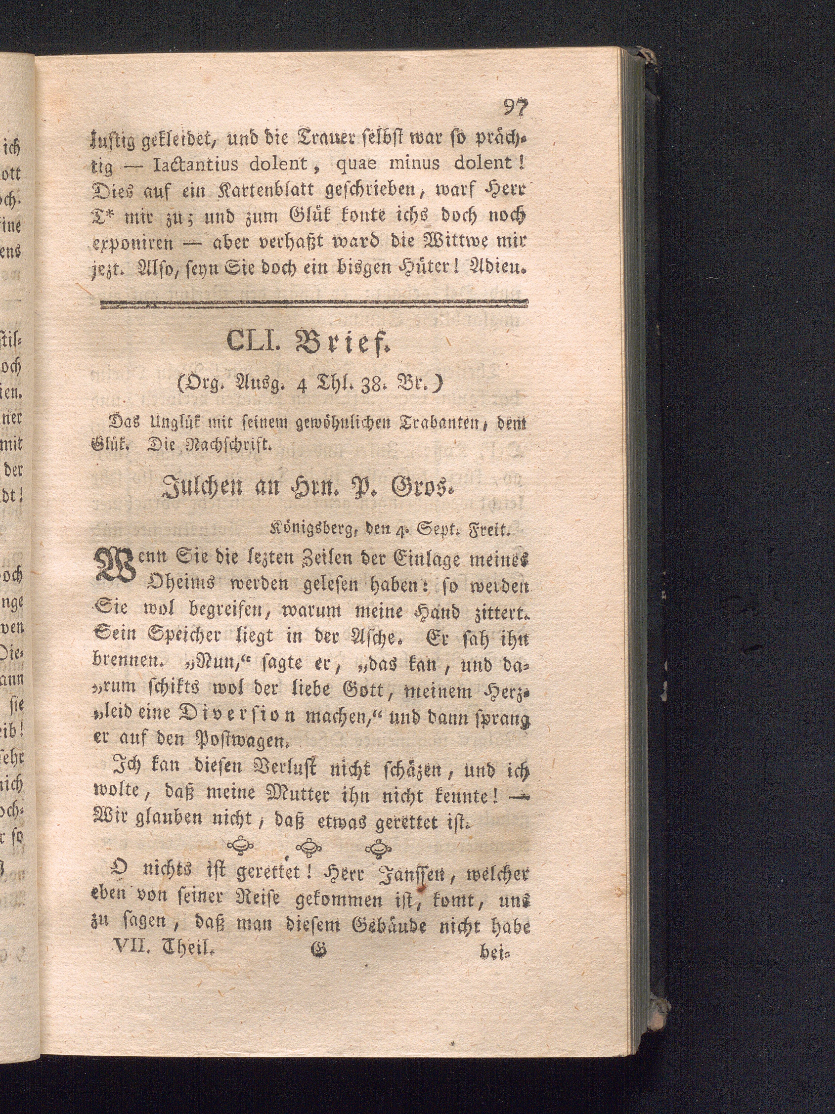 CLI. Brief. Das Unglück, mit seinem gewöhnlichen Trabanten, dem Glük. Die Nachsc[...]