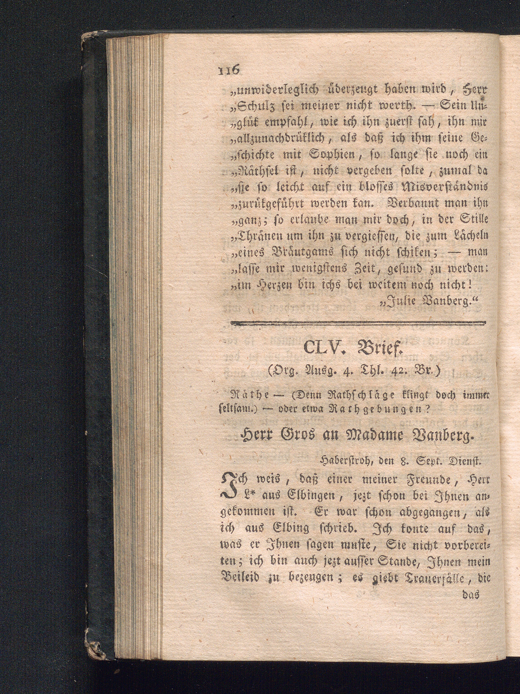 CLV. Brief. Räthe - (denn Rathschläge klingt doch immer seltsam;) - oder etwas R[...]