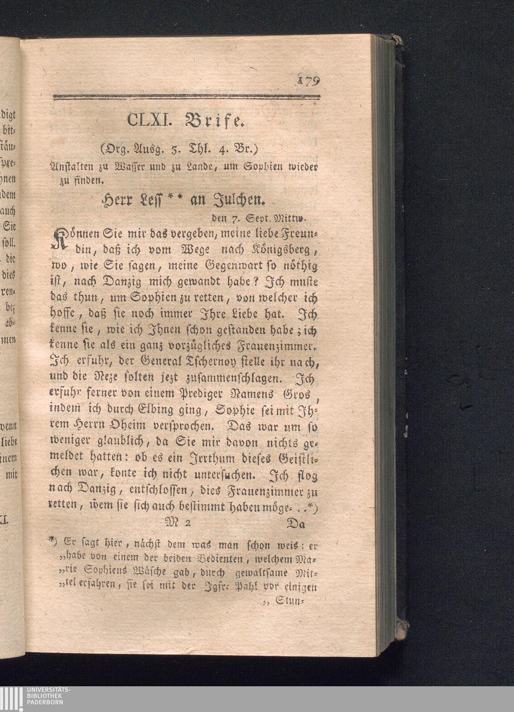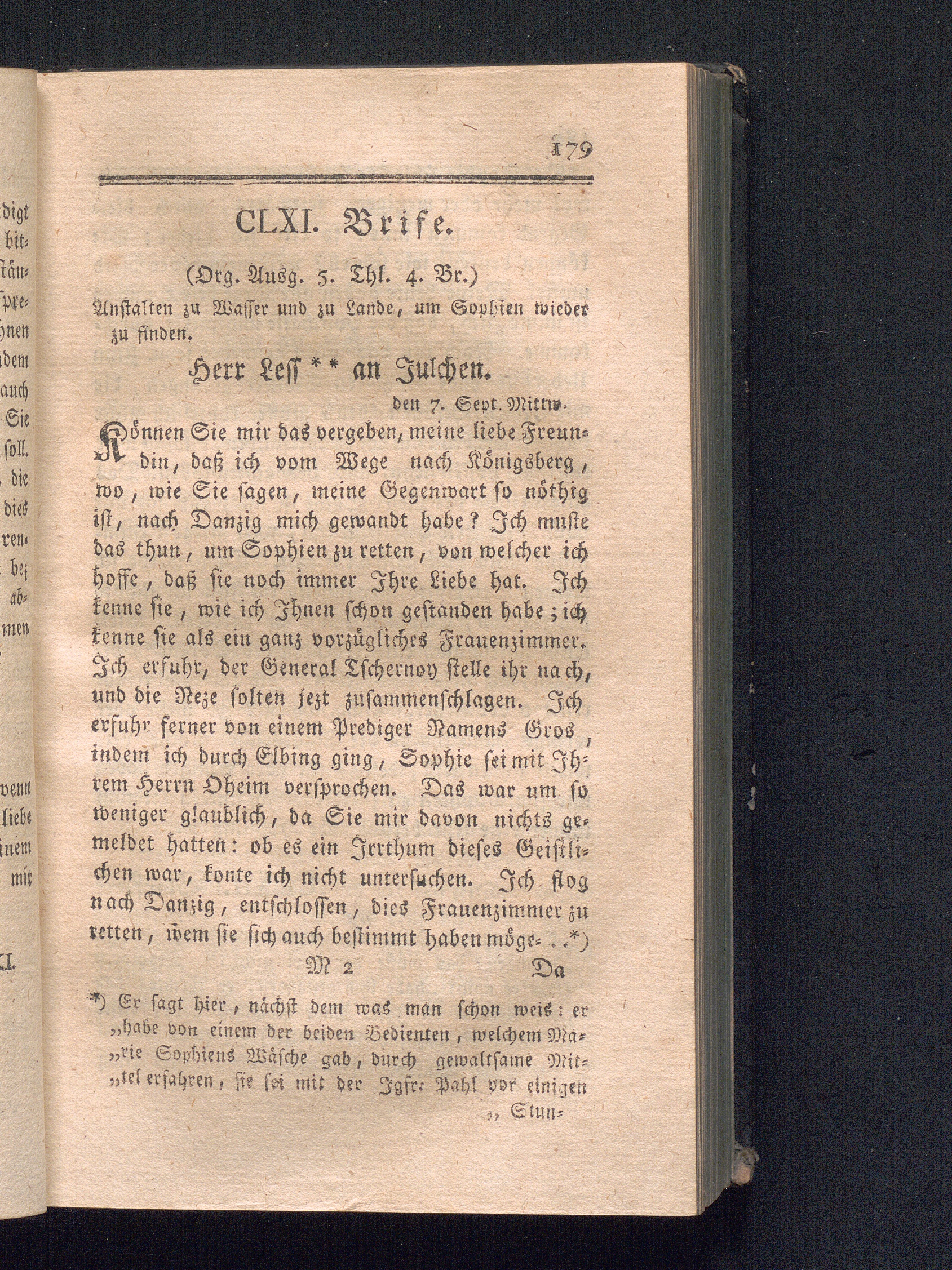 CLXI. Brief. Anstalten zu Wasser und zu Lande, um Sophien wieder zu finden.